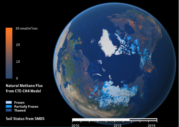 Les données de gel/dégel issues de SMOS contribuent à l'estimation d'émissions de méthane au sein du modèle européen Carbon Tracker.