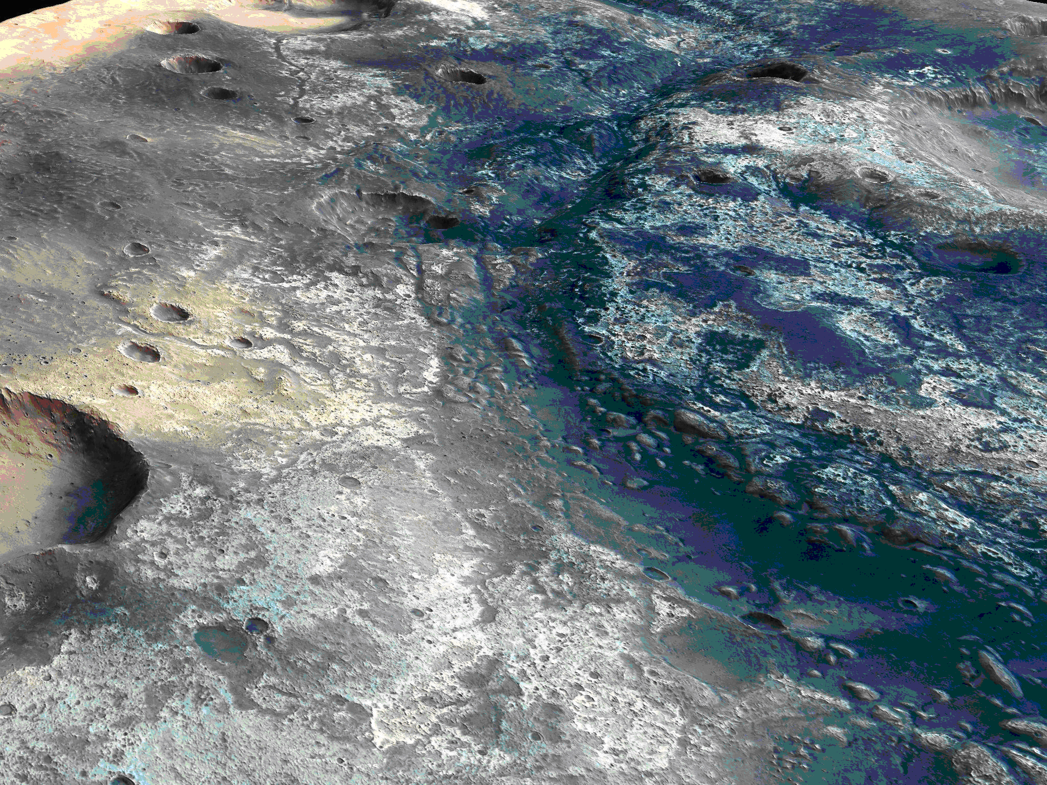 Ces premières observations ont mis en évidence deux grandes classes de phénomènes : ce qui s’apparente à des fleuves asséchés, ou vallées ramifiées, et des vallées de débâcles. Ces dernières révèlent que des flots d’eau importants ont raviné certaines régions de Mars en érodant des cratères de plusieurs kilomètres de diamètre.
