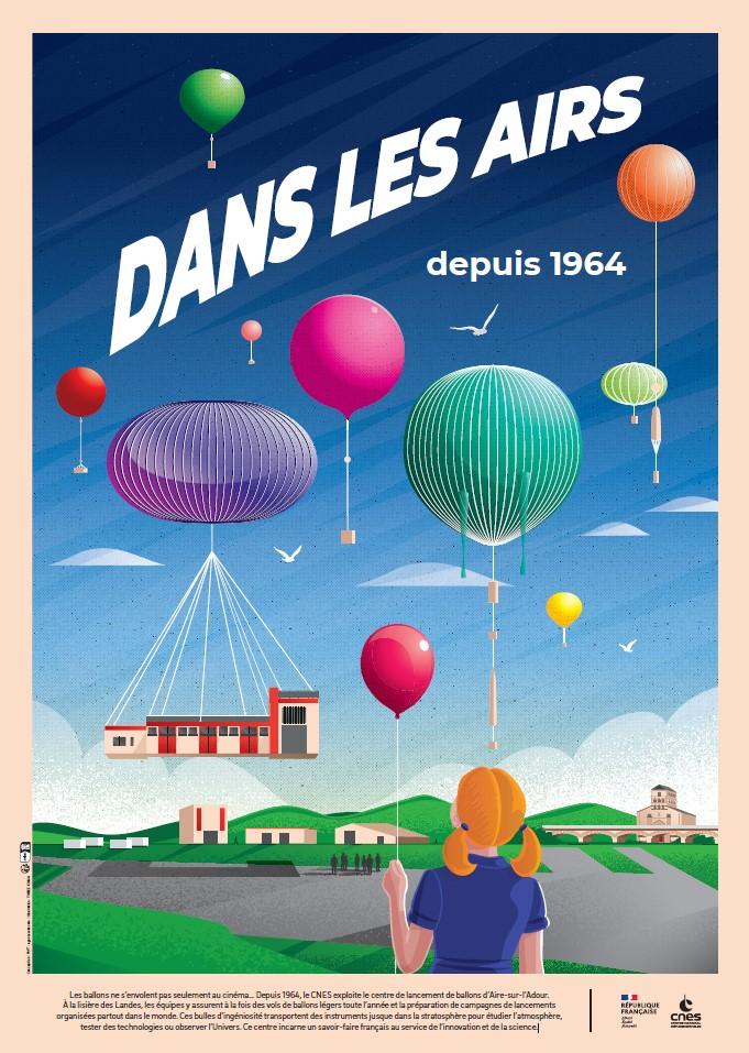 L’illustration, réalisée par l’artiste rouennais Three Koma pour l’agence Wat, met à l’honneur le centre de lancement de ballons et le territoire d’Aire-sur-l’Adour. Elle renvoie également à la poétique du ballon qui s'envole, avec la touche rétrofuturiste des affiches du CNES.