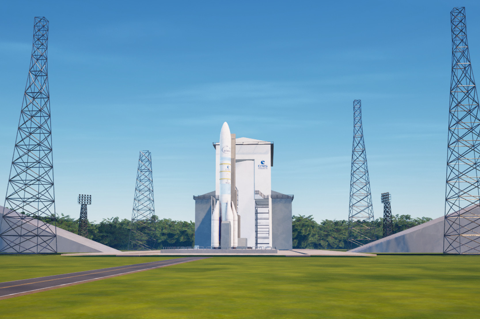 Difficile de passer à côté ! L'aventure démarre au Centre spatial guyanais avec un survol de l'ELA-4, le pas de tir utilisé pour Ariane 6. Pour l'occasion, l'ELA-4 a été fidèlement représentée avec son portique mobile, le pas de tir, ses carneaux… et bien sûr Ariane 6, la nouvelle génération du lanceur européen. Un clin d'œil également à l'ESA, ArianeGroup et Arianespace, nos partenaires de longue date au Centre spatial guyanais.