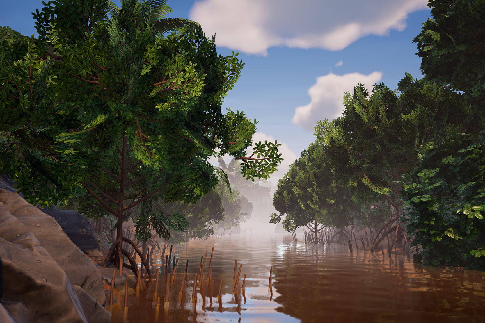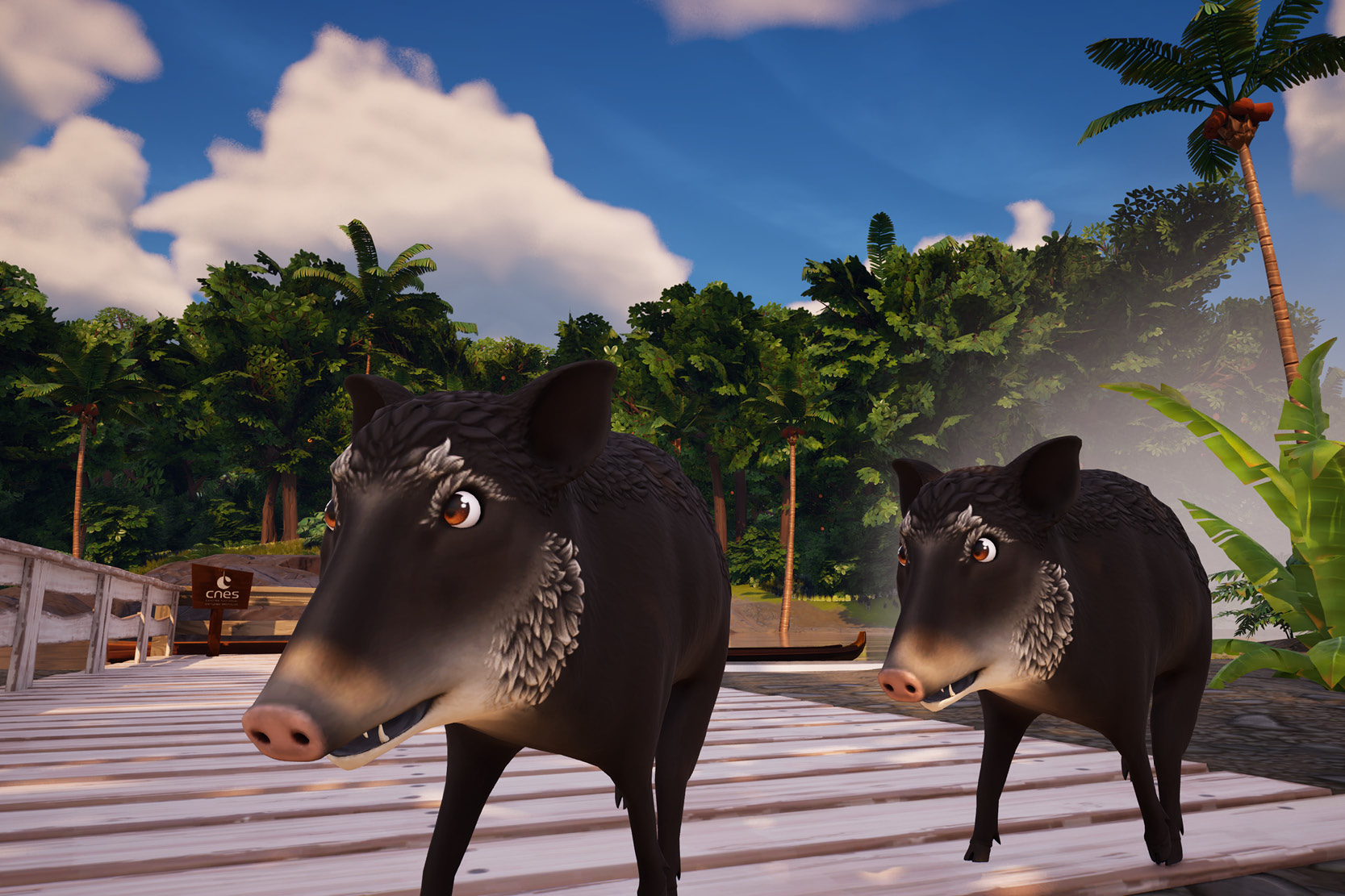 Lorsque le joueur embarque sur la pirogue, il navigue sur la crique Karouabo. La crique se situe à proximité de l'ancienne zone de lancement Ariane 5. Le CNES effectue des prélèvements réguliers dans la crique afin de s'assurer de la bonne qualité du cours d'eau, qui abrite une quarantaine de poissons et invertébrés.