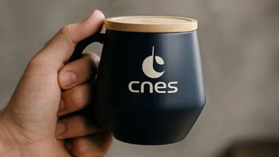 Il avait déserté la boutique, victime de son succès… Le mug CNES revient avec un nouveau design, plus original ! Sa céramique de haute qualité bleue nuit et son couvercle en bois en font un objet élégant et pratique. À la maison ou au bureau (ou en orbite… coucou l’ISS !), voilà de quoi donner une touche spatiale à votre boisson chaude.