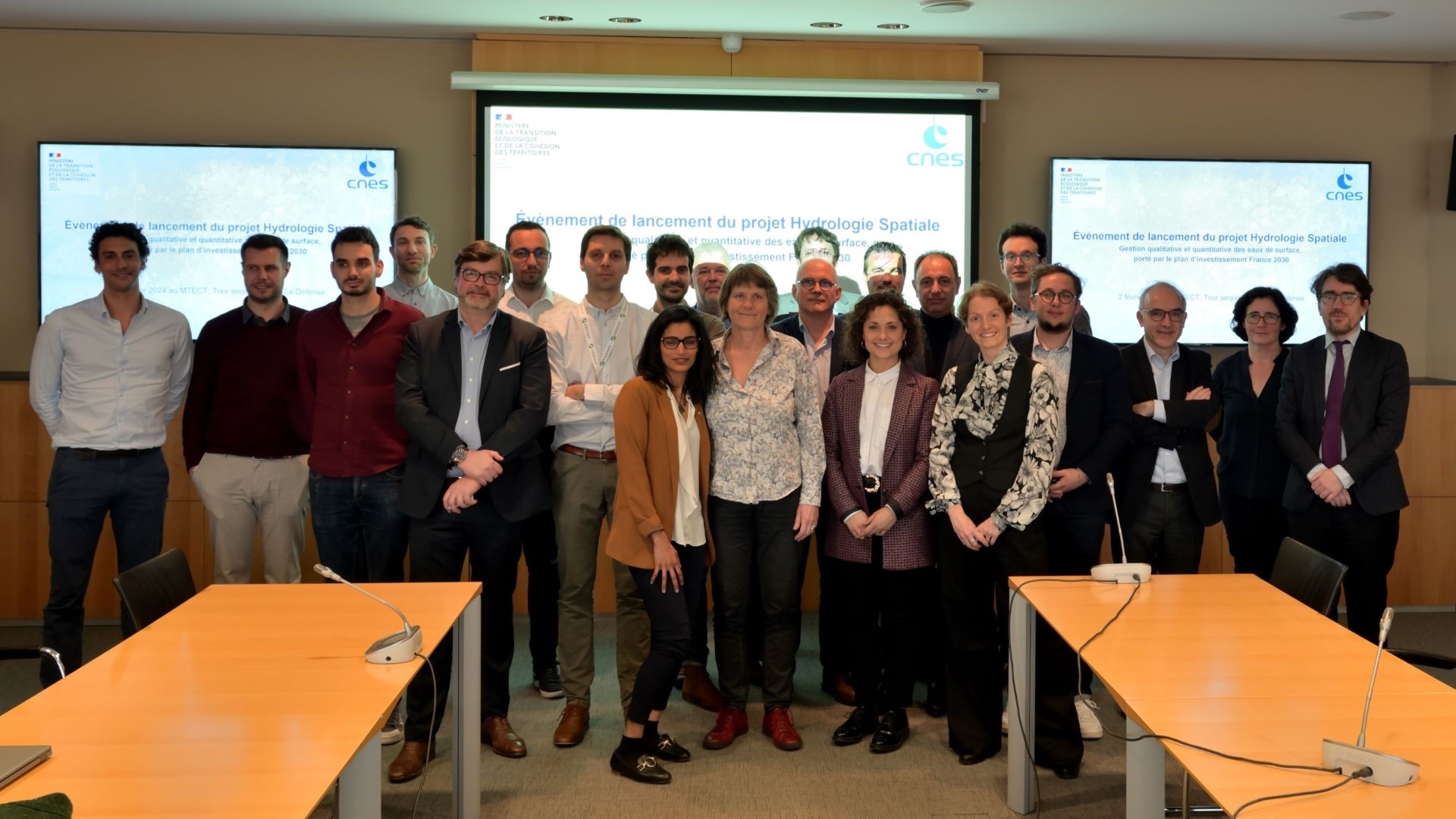 Le lancement officiel du projet « Hydrologie spatiale : gestion qualitative et quantitative des eaux de surface », porté par le plan d’investissement France 2030, s’est tenu le 2 février 2024 à l’initiative du Ministère de la Transition Écologique et de la Cohésion des Territoires (MTECT) et du CNES. L’événement a réuni une centaine de participants dont de nombreux utilisateurs potentiels des services développés.
