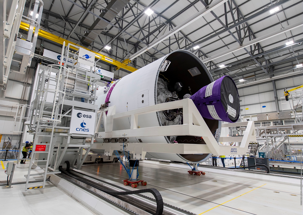 « Pour le fabriquer, on mélange un liant, polymère appelé polybutadiène hydroxytéléchélique (PBHT) sous forme d’un liquide visqueux, avec une charge oxydante sous forme de poudre, le perchlorate d’ammonium, et une charge réductrice, de la poudre d’aluminium. Après malaxage, l’ensemble est coulé dans le moteur, puis cuit dans un four où il prend l’aspect d’un matériau dur et caoutchouteux. Ce mélange reste inerte tant qu’il n’est pas chauffé. Lors du décollage, on le chauffe avec une flamme créée par l’allumeur pour provoquer la combustion », explique Christophe Bonhomme. Le propergol solide est fabriqué en Guyane chez Regulus, une entreprise détenue par Avio et ArianeGroup. Chaque booster d’Ariane 6 en contient 142 tonnes.