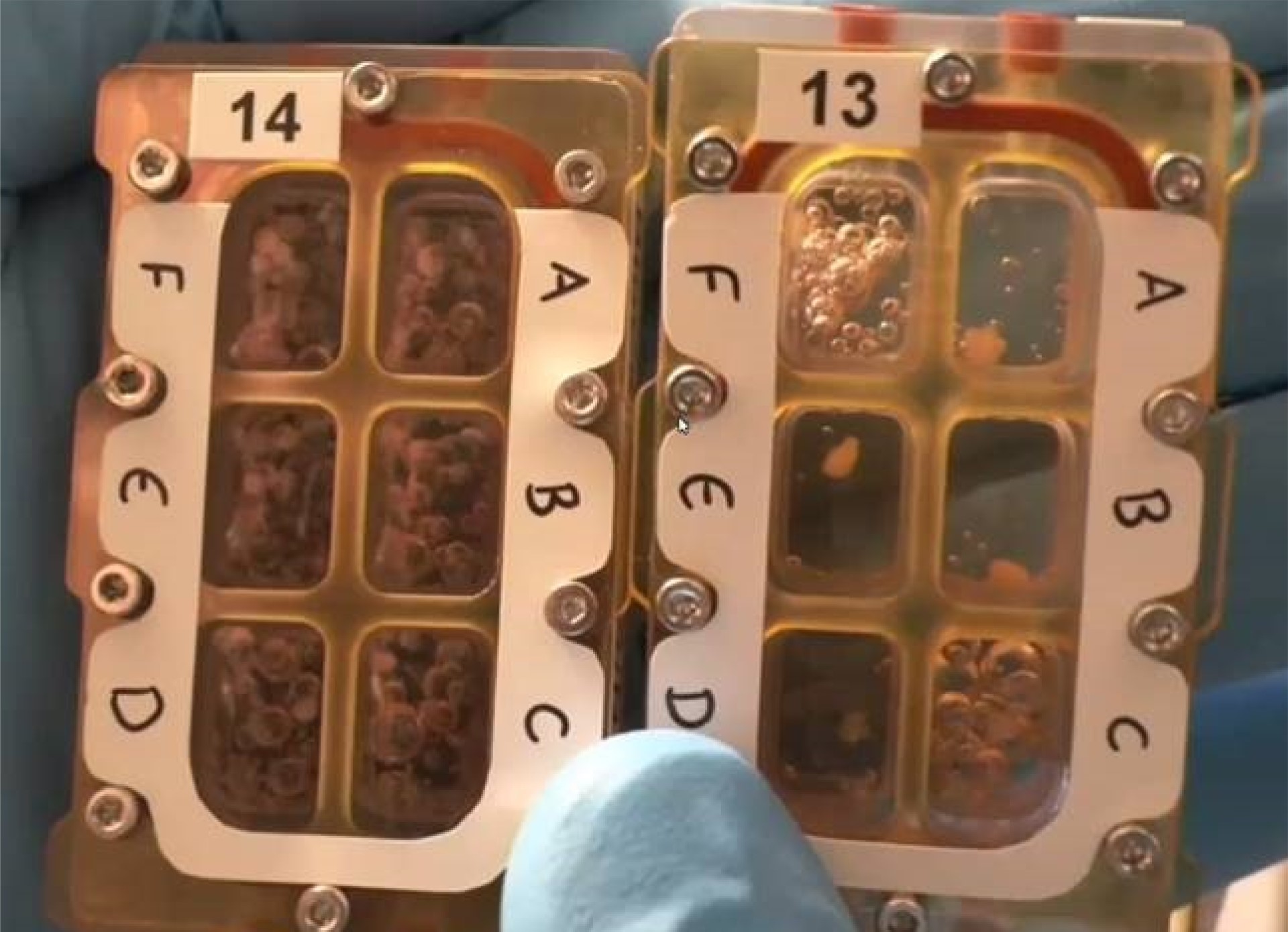 Les cassettes comportent un emplacement où une seringue remplie de milieu de culture frais peut être introduite par l’astronaute. Une autre seringue permet d’aspirer le milieu de culture usagé. Enfin, les astronautes ont suivi un protocole scientifique précis. À 3 moments (2 jours après l’arrivée à bord, au milieu de la mission et avant le retour sur terre), certains organoïdes ont été immobilisés. « Ils sont soit congelés soit « fixés » par un produit spécifique, détaille Miria Ricchetti. Cela permet d’analyser leur condition au moment de l’immobilisation, et ainsi revenir sur leur évolution au cours du temps. ».