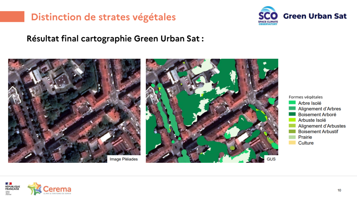 Emma Bousquet Borrut (CEREMA) a partagé les utilisations des MNS CARS et des MNT Bulldozer à partir d'images Pléiades dans le cadre de projets du CEREMA. Ces outils sont notamment utilisés pour des applications en gestion du territoire, en urbanisme et en environnement. Parmi les applications, on peut noter : la production de cartes d’occupation des sols, distinction des strates végétales, calcul d’ombrage et masquage de sources lumineuses.