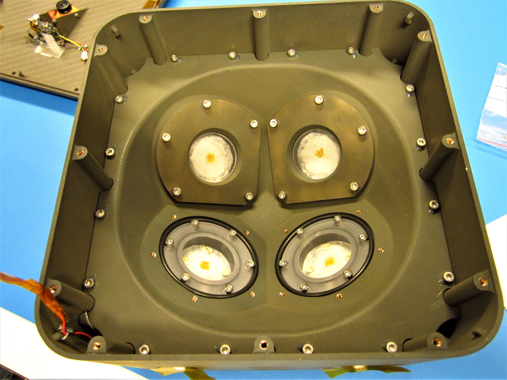 - Branchement de la blob box, via un câble USB, au système électrique de la station entrainant l'activation de la caméra et des LED à l'intérieur - l'expérience est lancée !