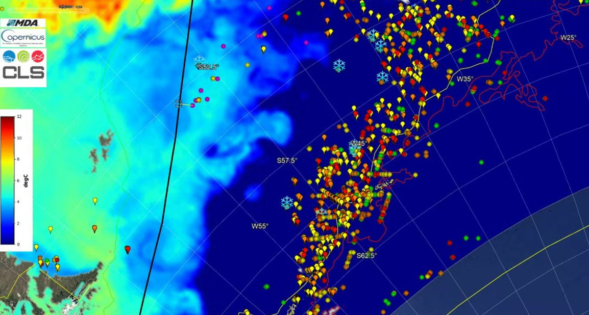 Notre mission consiste à identifier les secteurs où se trouvent les icebergs afin de déterminer la zone d’exclusion autour de l’Antarctique, dans laquelle les bateaux ne doivent pas naviguer. Dans une course autour du monde, les skippers ont bien sûr intérêt à se rapprocher des côtes antarctiques pour réduire la distance à parcourir. La subtilité de la zone d’exclusion Antarctique (ZEA) est donc de tracer la ligne le plus au sud possible pour laisser la place à la stratégie météo des skippers tout en garantissant leur sécurité vis-à-vis des risques de collision avec des icebergs.