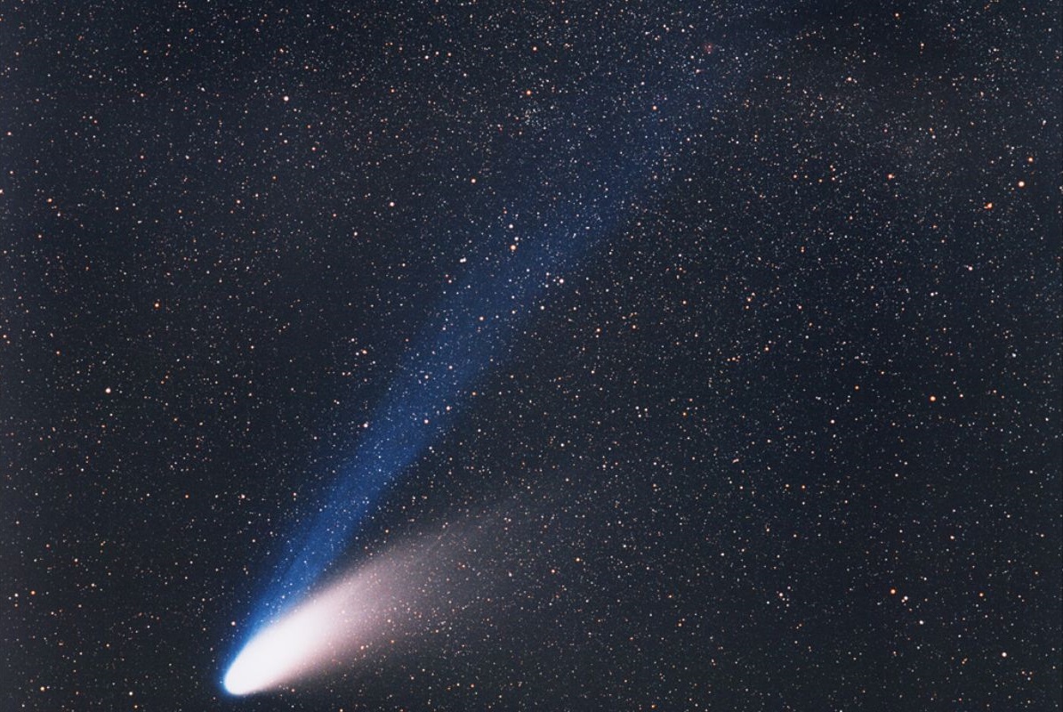 La comète ne produit pas de lumière (excepté les ions dans sa queue). C’est en fait le reflet du Soleil sur sa chevelure et sa queue qui nous permet de les voir dans le ciel.