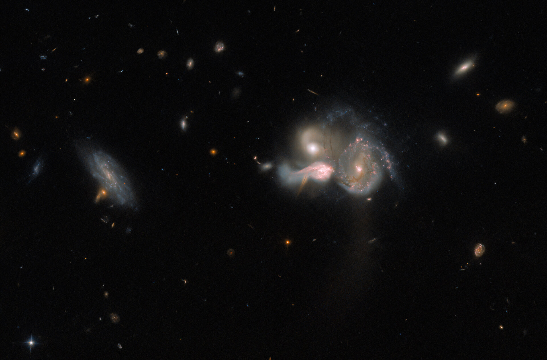 De plus, les galaxies peuvent interagir entre-elles : elles peuvent entrer en collision, fusionner... On parle même de cannibalisme galactique lorsqu’une galaxie absorbe une petite voisine. Cette dernière se disloque complètement à l’intérieur de la grande, qui, elle, ne change quasiment pas. Bon appétit !