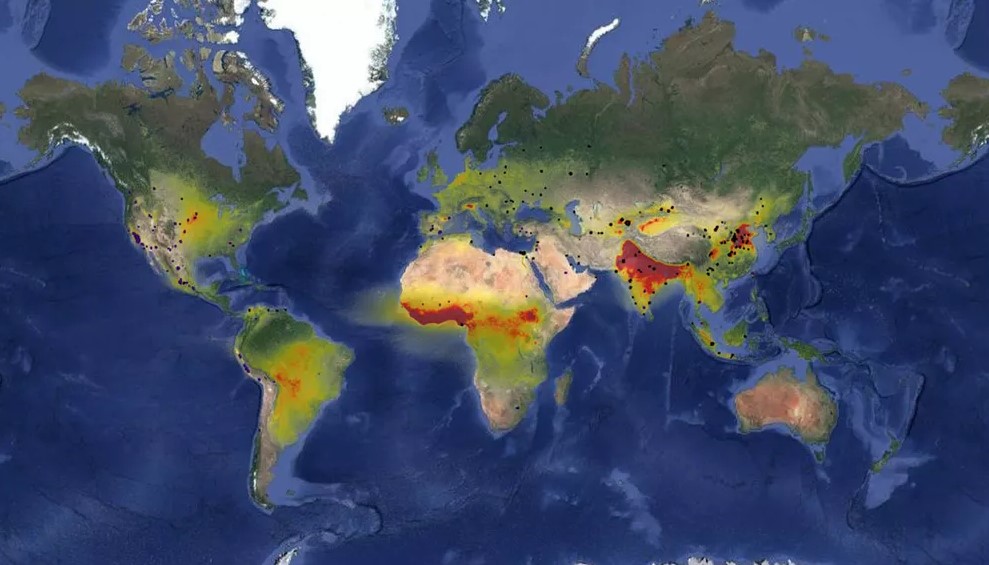 Une autre information est cruciale pour lutter contre la pollution de l’air : connaître la source de la pollution. Grâce aux données collectées par IASI entre 2008 et 2016, une équipe de scientifiques franco-belges a élaboré en 2018 la première carte mondiale des émissions d’ammoniac, au kilomètre près. 248 sources ponctuelles d’émissions ont été identifiées, dont les deux tiers étaient passées sous les radars jusqu’à présent. Excepté une source d’origine naturelle en Tanzanie, elles ont toutes été reliées aux activités humaines… 130 sources sont des usines de fabrication d’ammoniac comme engrais et 83 sont des zones d’élevage intensif (les déjections d’animaux émettent de l’ammoniac).