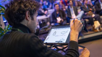 L’illustrateur Livio Fania réalisera une fresque géante des temps forts de la journée sur notre stand. Sa performance sera retransmise en direct sur nos écrans à divers moments de la journée !