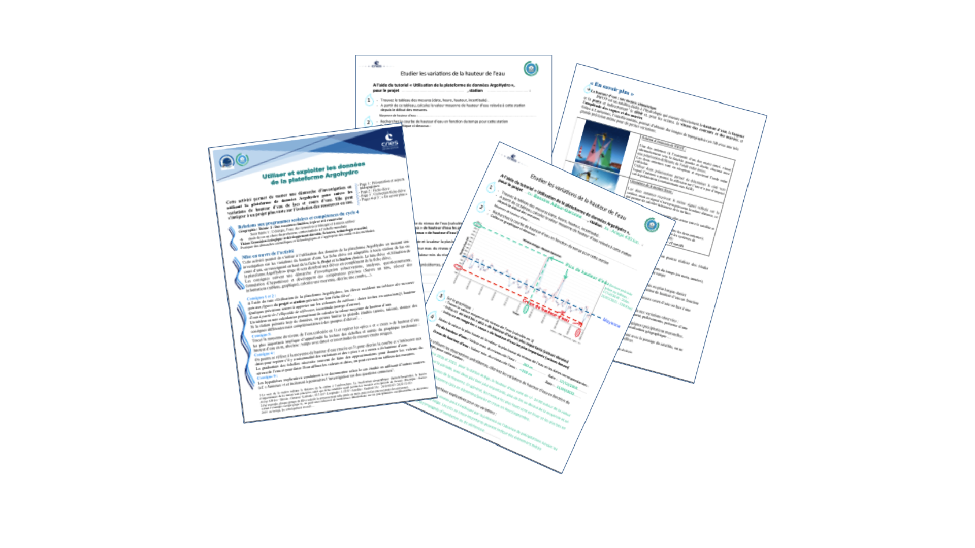 - Utiliser et exploiter les données de la plateforme Argohydro : pour mener une démarche d’investigation en utilisant la plateforme de données Argohydro pour suivre les variations de hauteur d’eau de lacs et cours d’eau .