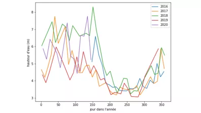Traitement de données avec Python possible : tracer, analyser et comparer les variations du niveau de l'eau au cours du temps (Exemple : saisons de la Garonne vues par sa hauteur d'eau