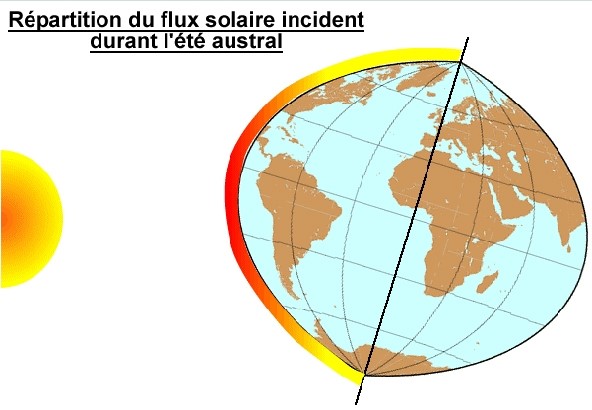 Le soleil chauffe de façon inégale la surface terrestre. Cela entraîne des mouvements de l’Atmosphère et de l'Océan qui transportent de l'énergie des zones excédentaires vers les zones déficitaires.