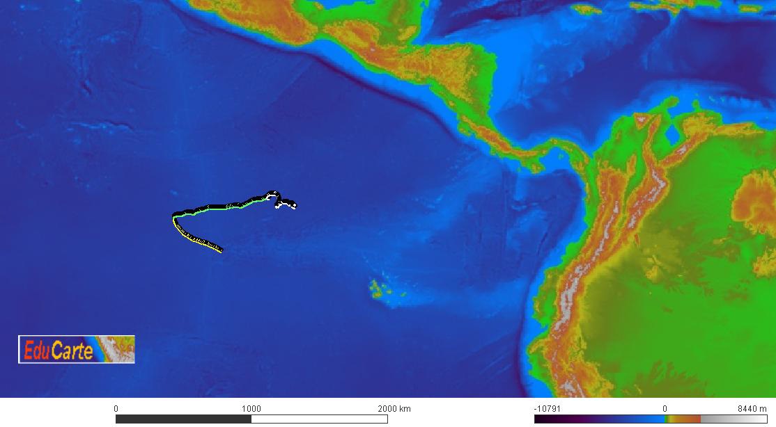 Elles ont été récupérées et intègrées dans un tableur afin de mieux travailler sur ces données. A la première lecture des données, les élèves vérifient que les données sont cohérentes : nous sommes bien dans le Pacifique en zone équatoriale, là où le JOIDES se trouve pour ses opérations de forage. Le bateau ne va pas bouger ; il deviendra un bon référentiel pour la bouée qui, elle, file rapidement vers le Nord Ouest.