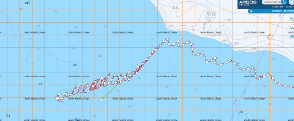 Depuis le site d’Argonautica ; les positions de la bouée apparaissent chaque semaine.