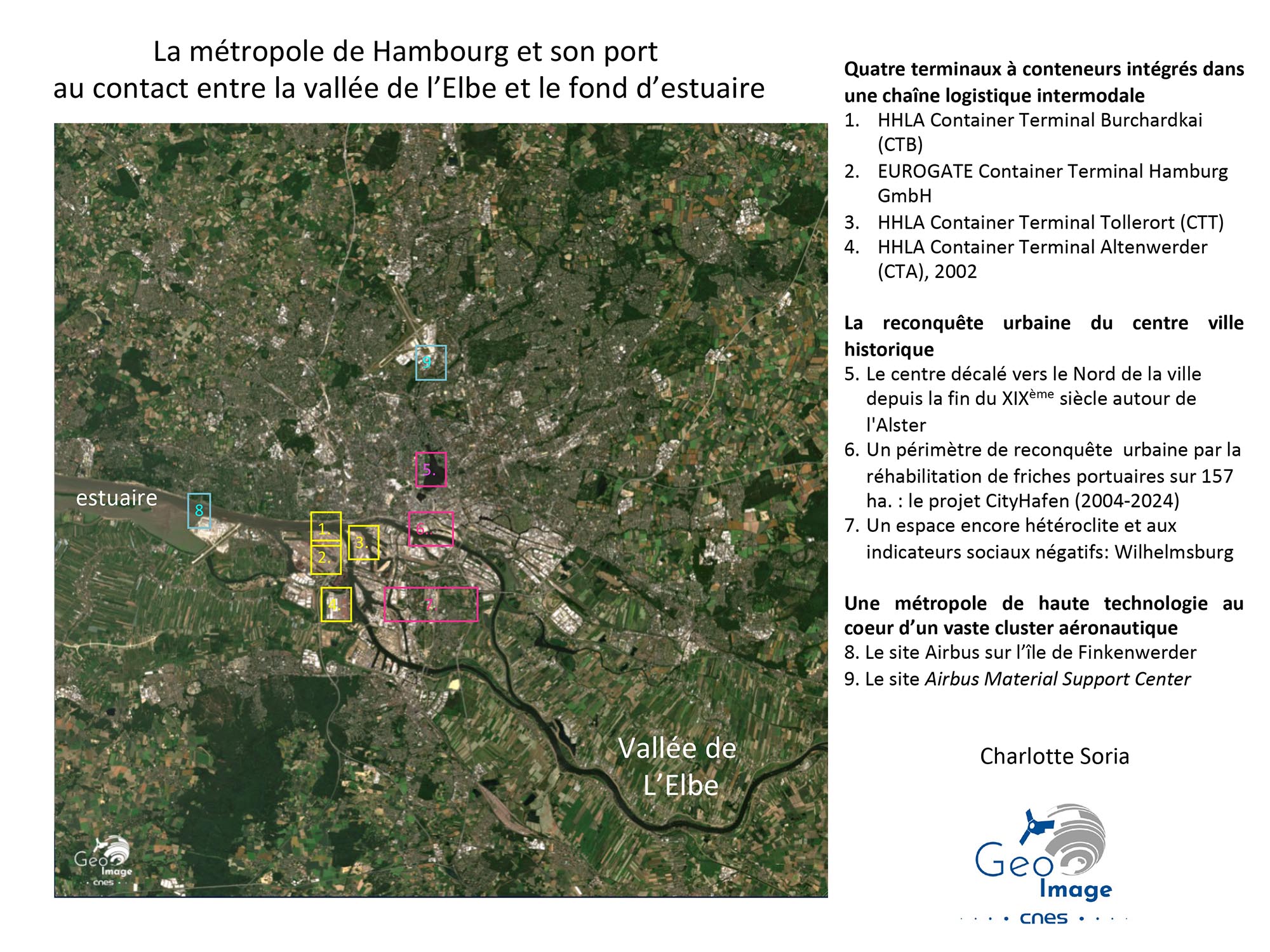 Au fond de l’estuaire de l’Elbe en Allemagne du Nord, Hambourg est à la fois l’une des grandes métropoles portuaires de la Northern Range et une grande ville aéronautique avec Airbus. « Porte sur le monde » de l’Allemagne (Tor zur Welt) dont l’économie est largement fondée sur les exportations, elle est devenue un hub majeur, européen et mondial. Grâce à la réunification allemande qui lui permet de renouer avec son vieil hinterland centre-européen, puis grâce aux « Routes de la Soie » chinoises dont elle devient un des débouchés continentaux. Contrairement à d’autres métropoles littorales, il n’y a pas eu de dissociation régionale entre la ville et le port. Pour autant, Hambourg et son port sont confrontés à de nombreux défis environnementaux, économiques, logistiques et urbains et connaissent de profondes mutations dont témoignent de grands projets d’aménagement et d’urbanisme.