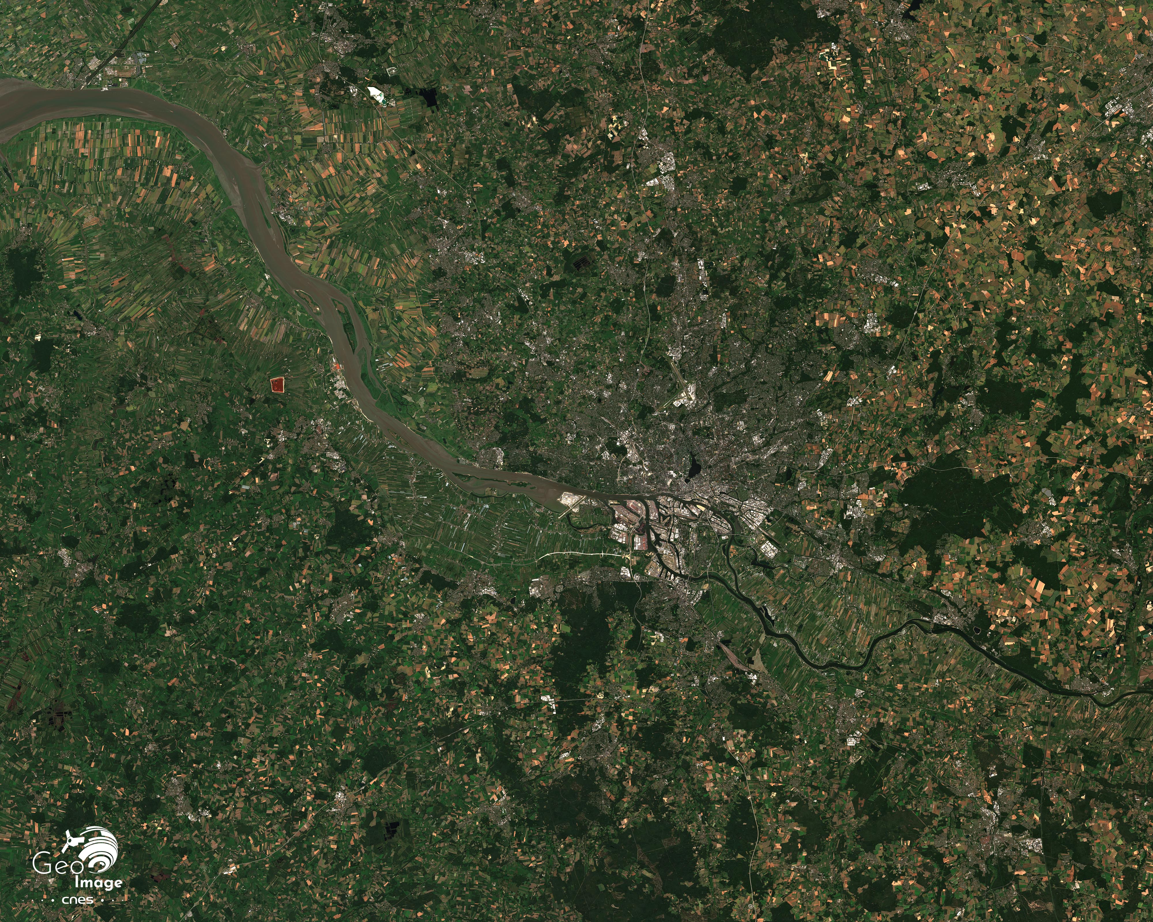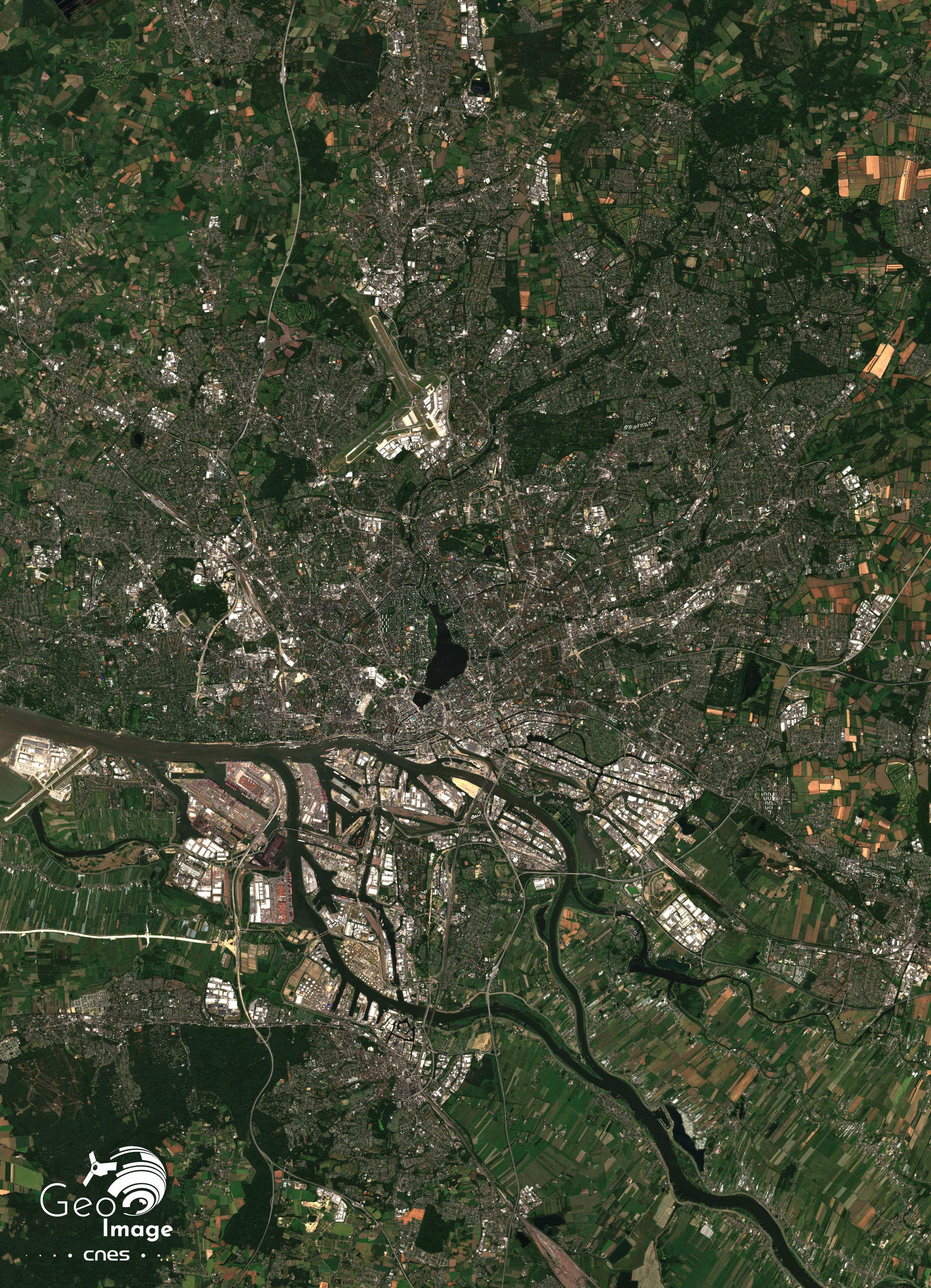 Cette image de Hambourg a été prise par le satellite Sentinel-2B le 8 juillet 2023. Il s’agit d’une image en couleurs naturelles de résolution native à 10m.