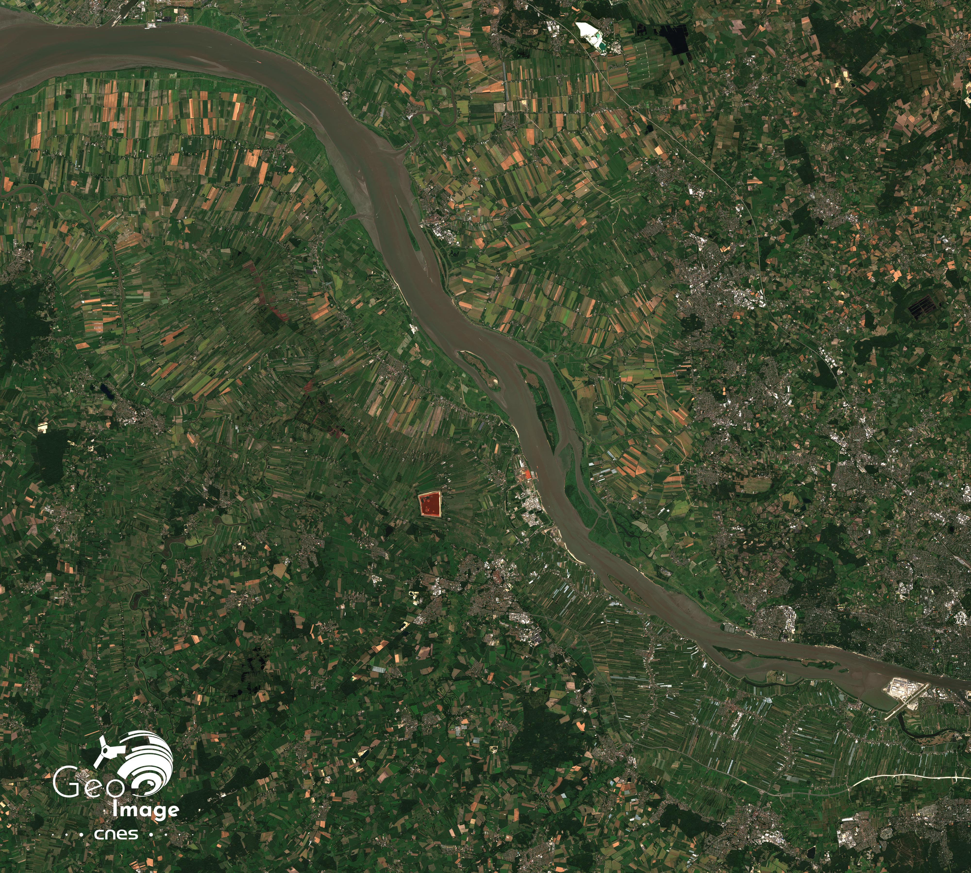 Les images satellites ci-dessous ont été prises par un satellite Pléiades le 3 juin 2022. Il s’agit d’une image en couleur naturelle, de résolution native à 0,70m, ré-échantillonnée à 0,5m.