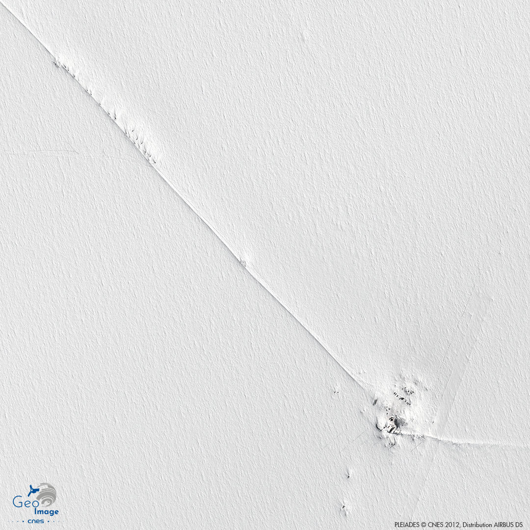 Une immensité blanche et glacée traversée par une piste aboutissant à quelques bâtiments couverts de glace et de neige. Nous sommes ici au bout du monde, en plein continent antarctique, au-dessus de la station scientifique russe Vostok.
