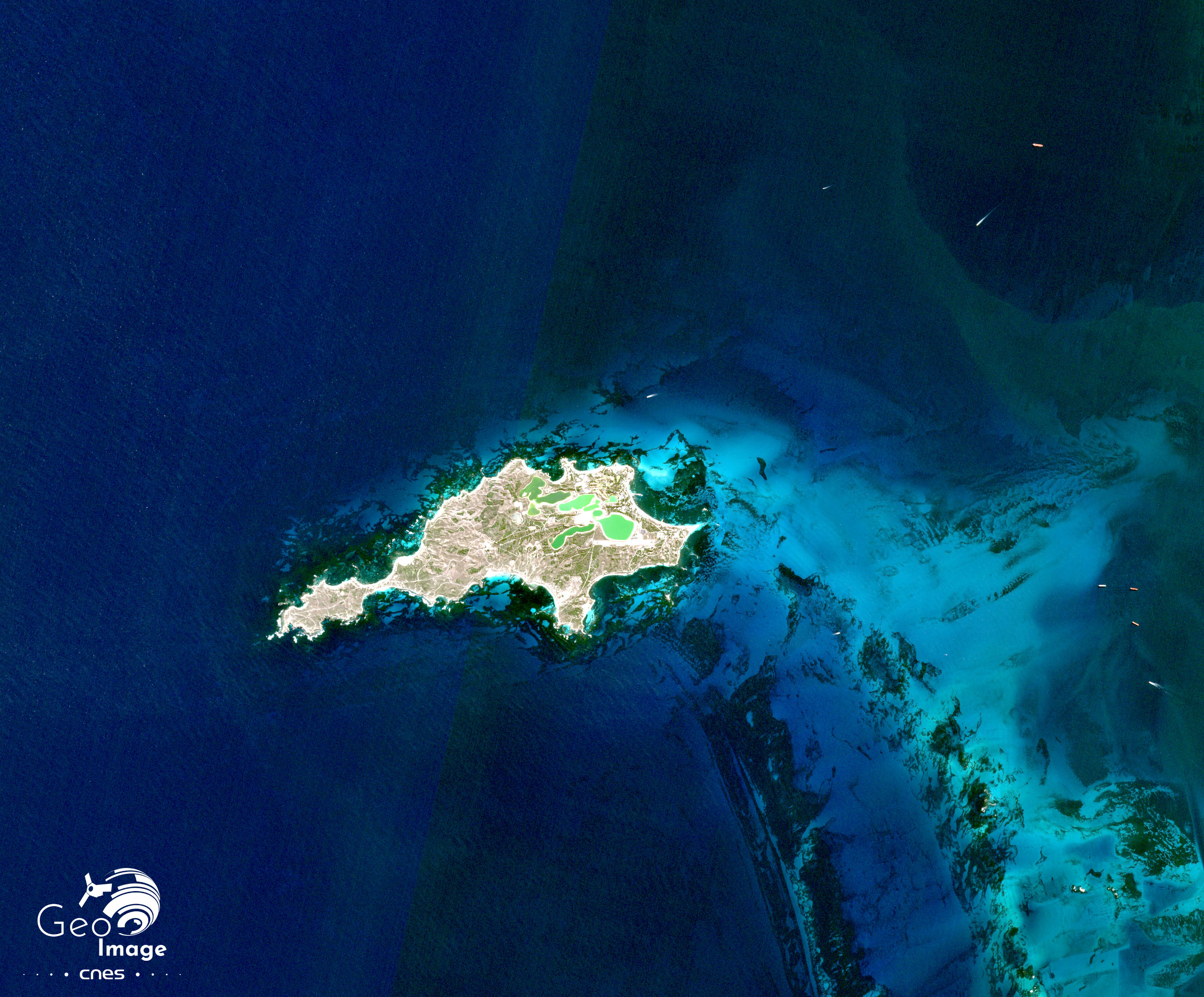 Aussi l’image satellite permet de constater un contraste est/ouest, la partie occidentale étant soumise à un contrôle constant des rangers de Rottnest qui veillent à la bonne conduite des touristes. Les voitures ne sont pas autorisées et les différentes routes visibles sur le pourtour de l’île sont en fait des sentiers et des pistes cyclables.