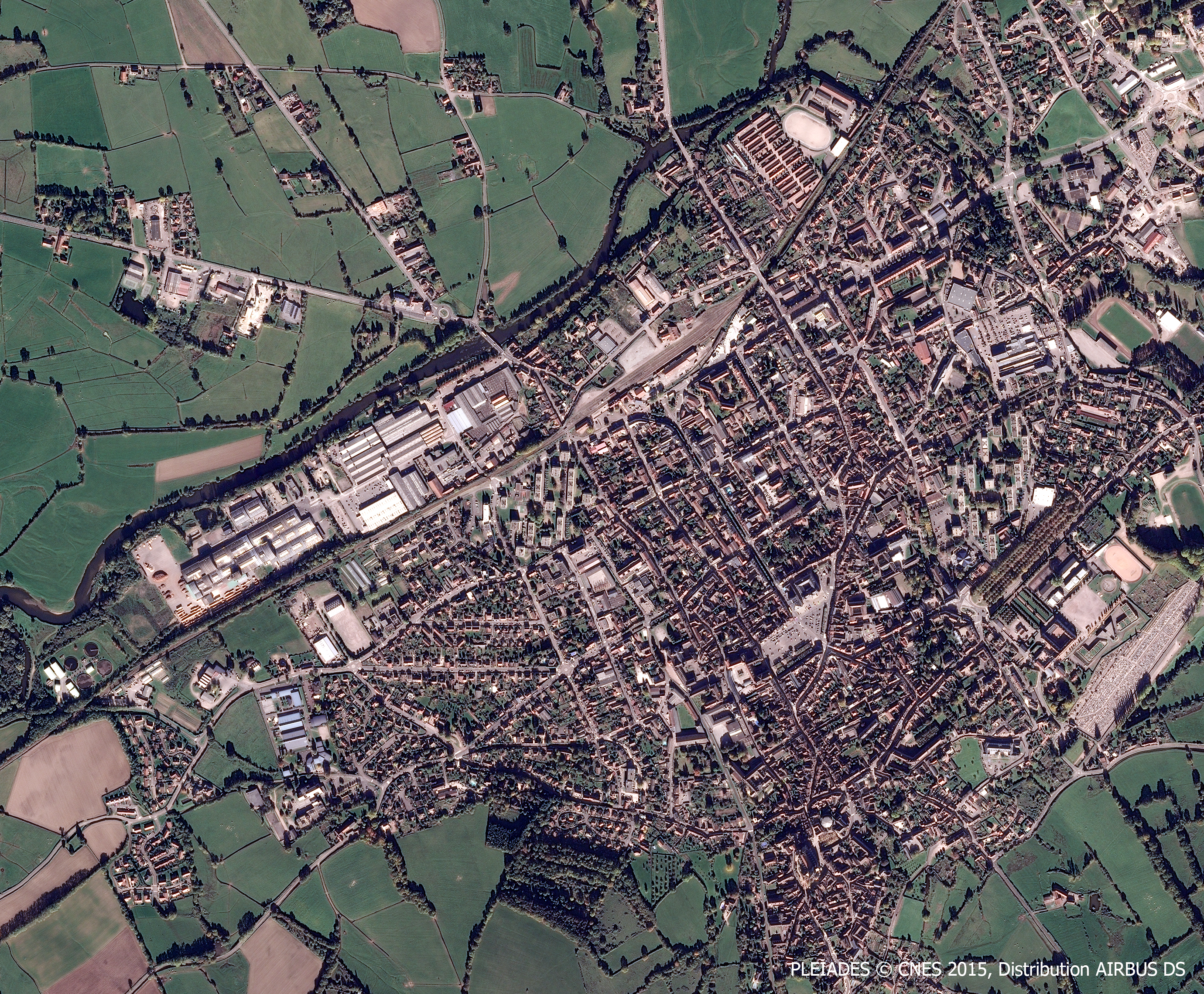 Cette image a été prise par un satellite Pléiades le 19/10/2015. Il s’agit d’une image en couleurs naturelles, de résolution native à 0,70m, ré-échantillonnée à 0,5m