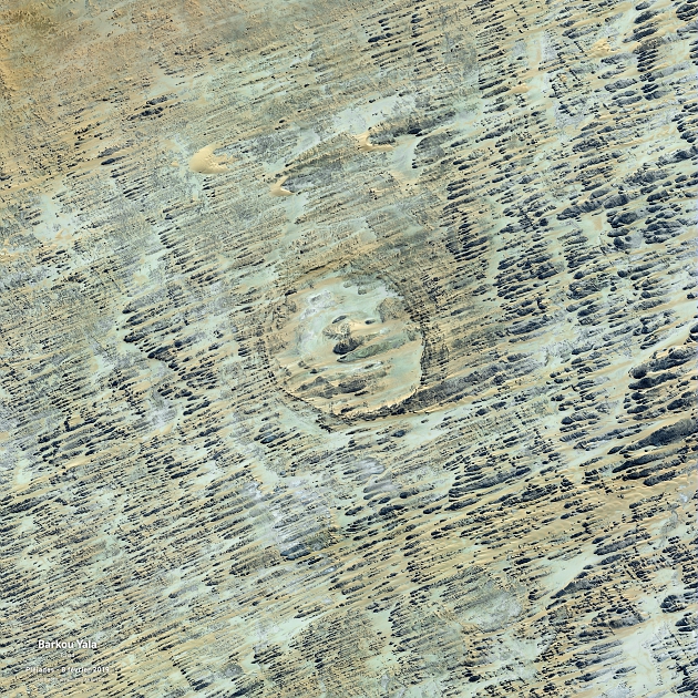 Le bassin de Faya de 2 km environ, est un énigmatique élément circulaire dans le désert du Borkou-Ennedi-Tibesti, au nord du Tchad. Le 9 septembre 2021 l’image de la semaine du CNES #HebdomaTerre, présentait cette structure circulaires, prise par un satellite Pleiades. Est-ce un nouveau cratère d’impact de météorite ?