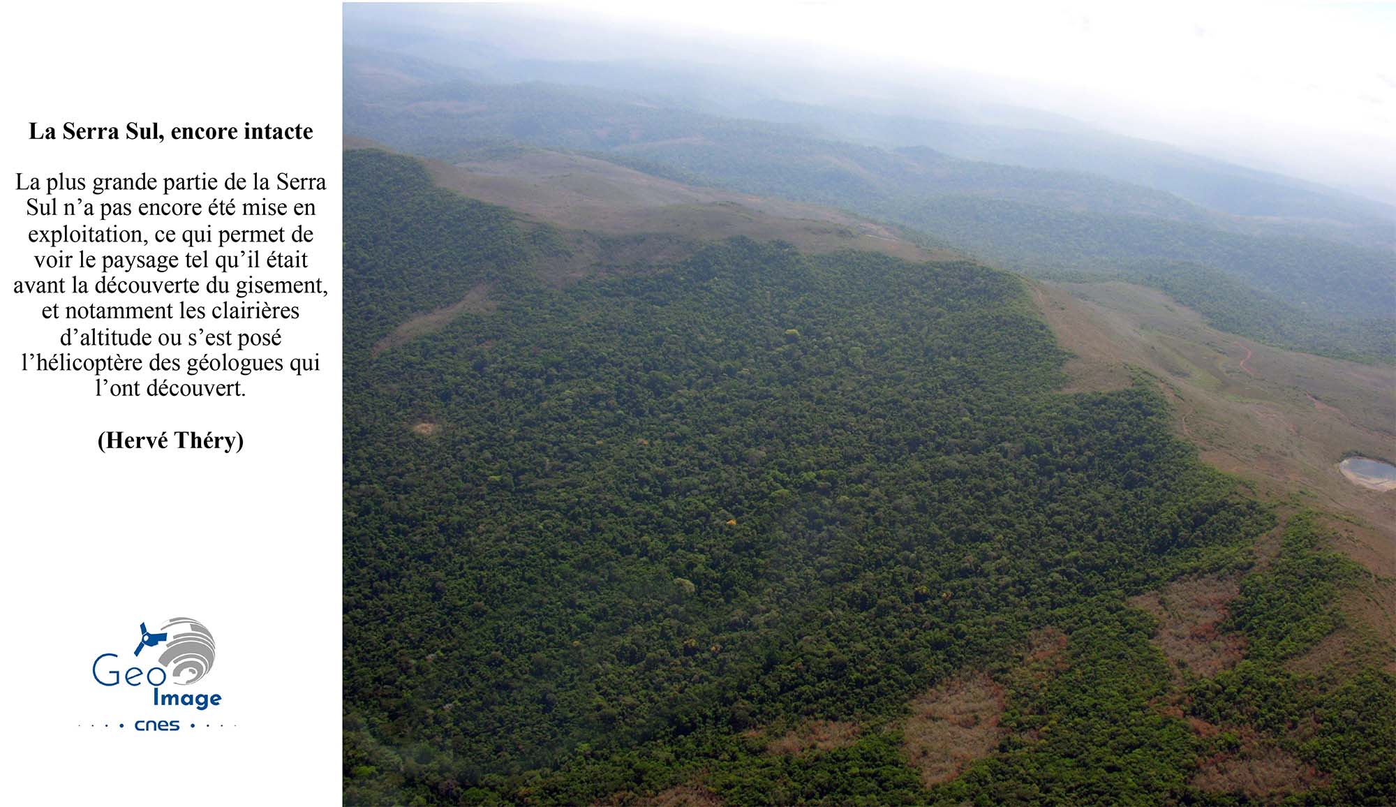 La plus grande partie de la Serra Sul n’a pas encore été mise en exploitation, ce qui permet de voir le paysage tel qu’il était avant la découverte du gisement, et notamment les clairières d’altitude où s’est posé l’hélicoptère des géologues qui l’ont découvert. On raconte que ce pilote leur avait indiqué que le compas de bord s’était complètement affolé en approchant de la Serra, qui n’est pas très étonnant étant donné l’énorme masse métallique qu’elle représente.