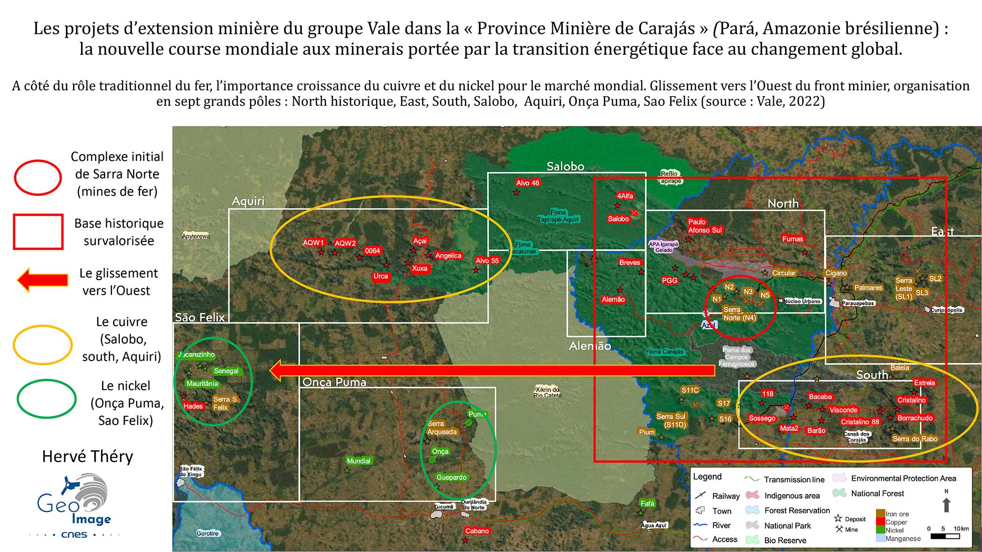 Portée par les énormes besoins mondiaux en minerais liés à la transition énergétique (cuivre, nickel, manganèse...), la firme Vale s’est lancée dans la création d’un vaste front pionnier vers l’Ouest qui va profondément bouleverser la géographie de la région. Par ses ressources géologiques exceptionnelles, la Province Minérale Carajás demeure un pôle majeur de la planète minière.