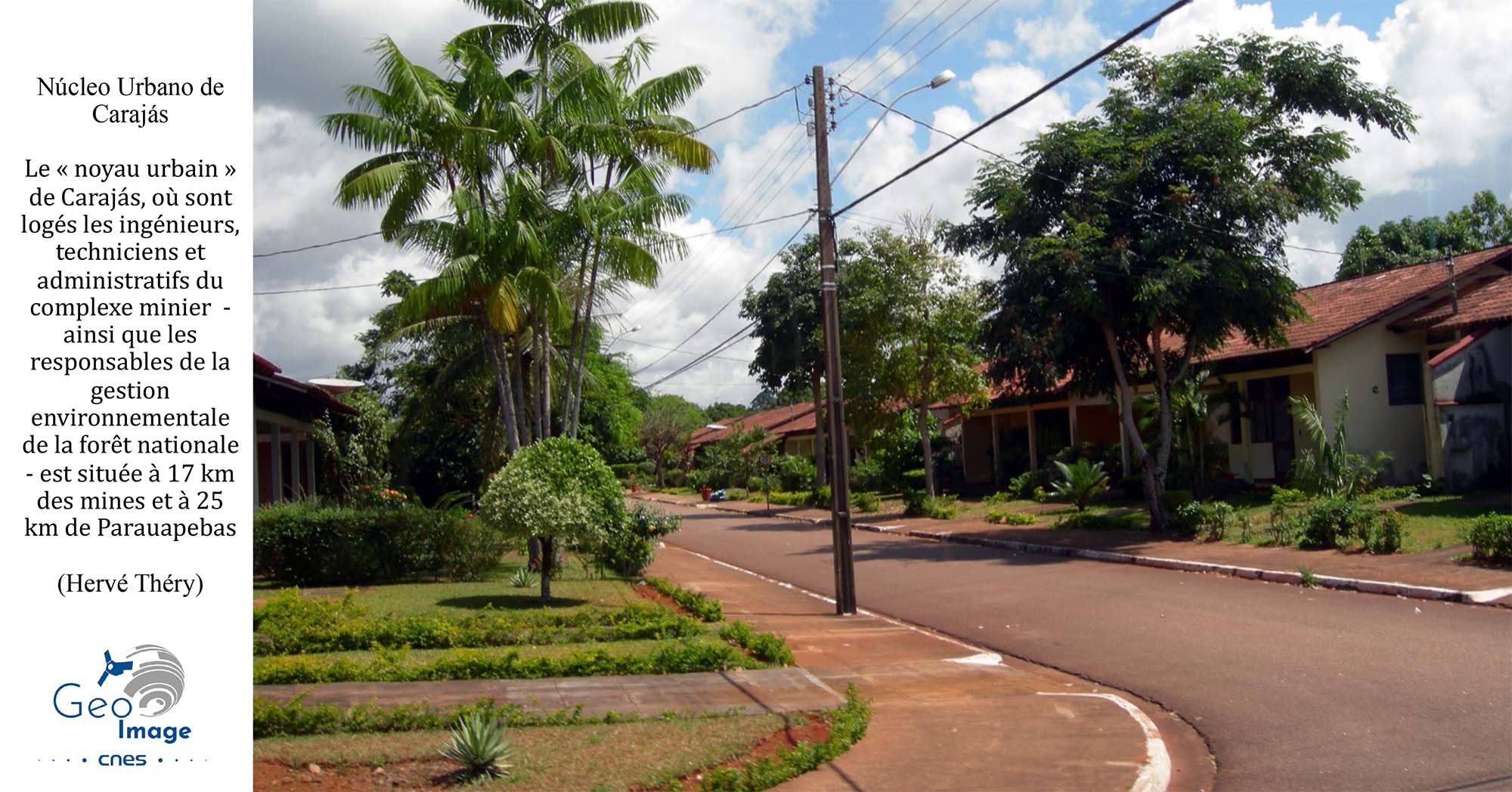 « D'un côté, la ville d'entreprise, Carajás, avec toutes les infrastructures en place – école, hôpital, banques, hôtel – pour les ingénieurs, techniciens et cadres de l'entreprise ; de l'autre, au pied des montagnes, Parauapebas, une ville sans aucune infrastructure, ville de migrants, pour la plupart à la recherche d'un emploi, ou d'employés d'entreprises de services. » (Mello-Théry, N. A. de ; Théry, H.2014).