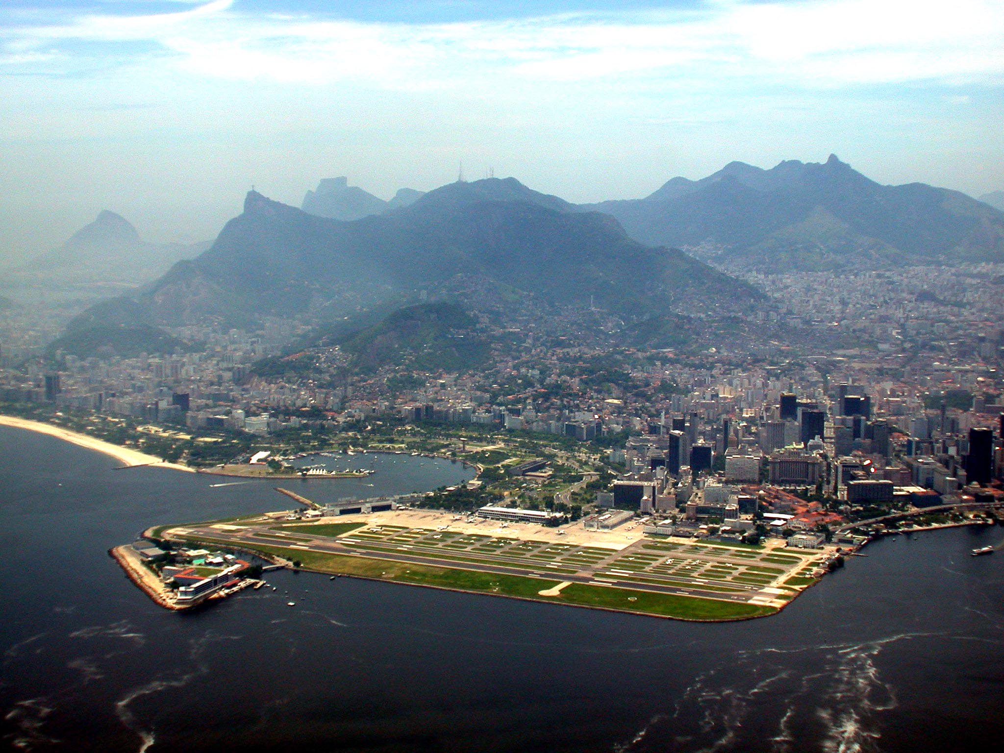 L’aéroport Santos Dumont a été construit en remblai sur la baie et a relié au centre historique l’île de Villegaignon, où s’étaient installés les premiers occupants européens du site, des Français venus y fonder la « France antarctique ». Ces Normands avaient alors baptisé « Pot de beurre » le morne aujourd’hui appelé « Pain de sucre ».