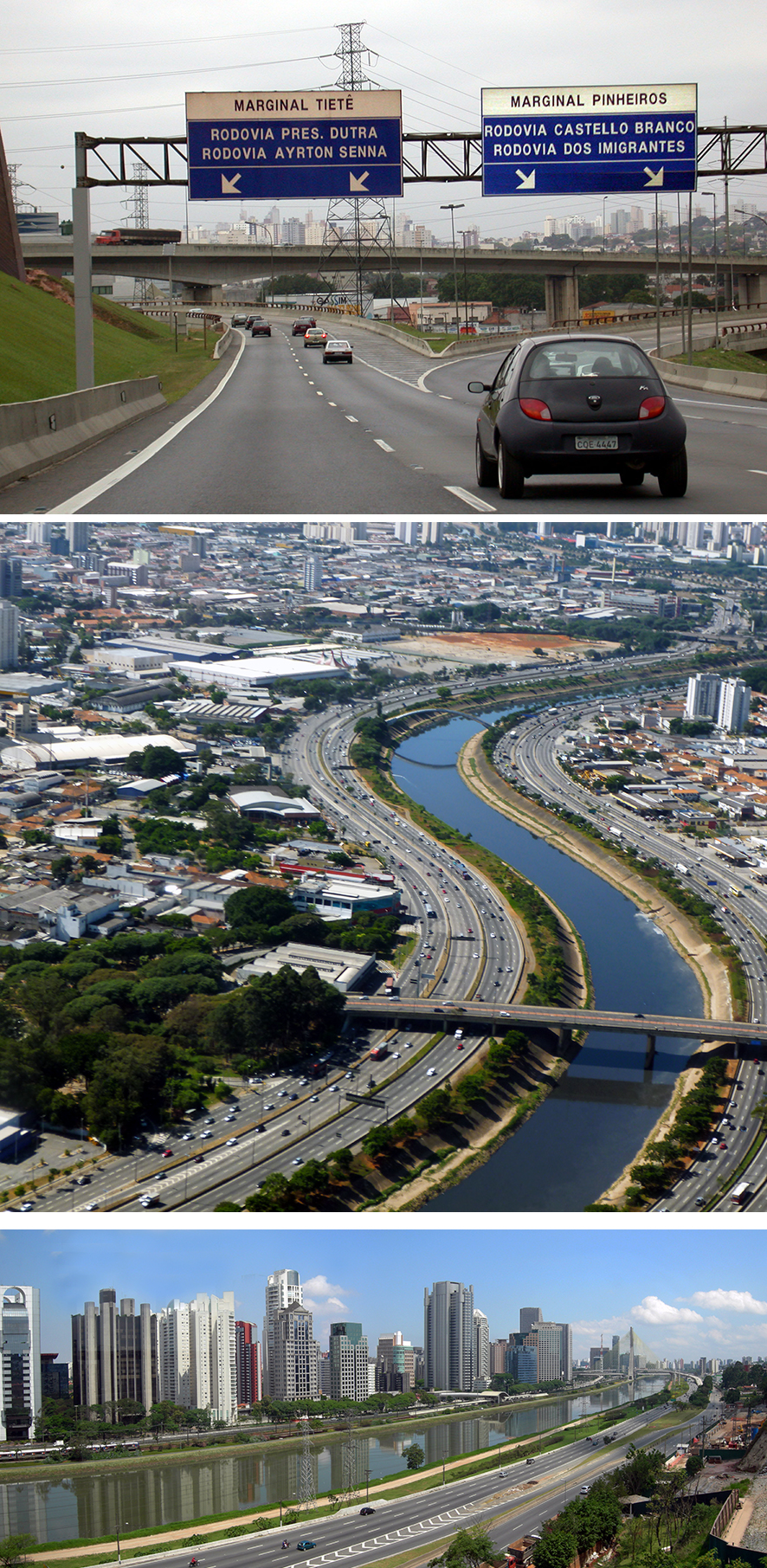 Progressivement élargies, elles comptent aujourd'hui jusqu'à onze voies dans chaque sens, soit 22 voies au total. Mais malgré la création progressive de voies supplémentaires, elles sont constamment saturées. Depuis que le rodizio a exclu 20 % des véhicules les jours ouvrables, le nombre de véhicules dont la plaque minéralogique se termine par deux des 10 chiffres de 0 à 9, la flotte en circulation a augmenté de 40 %...