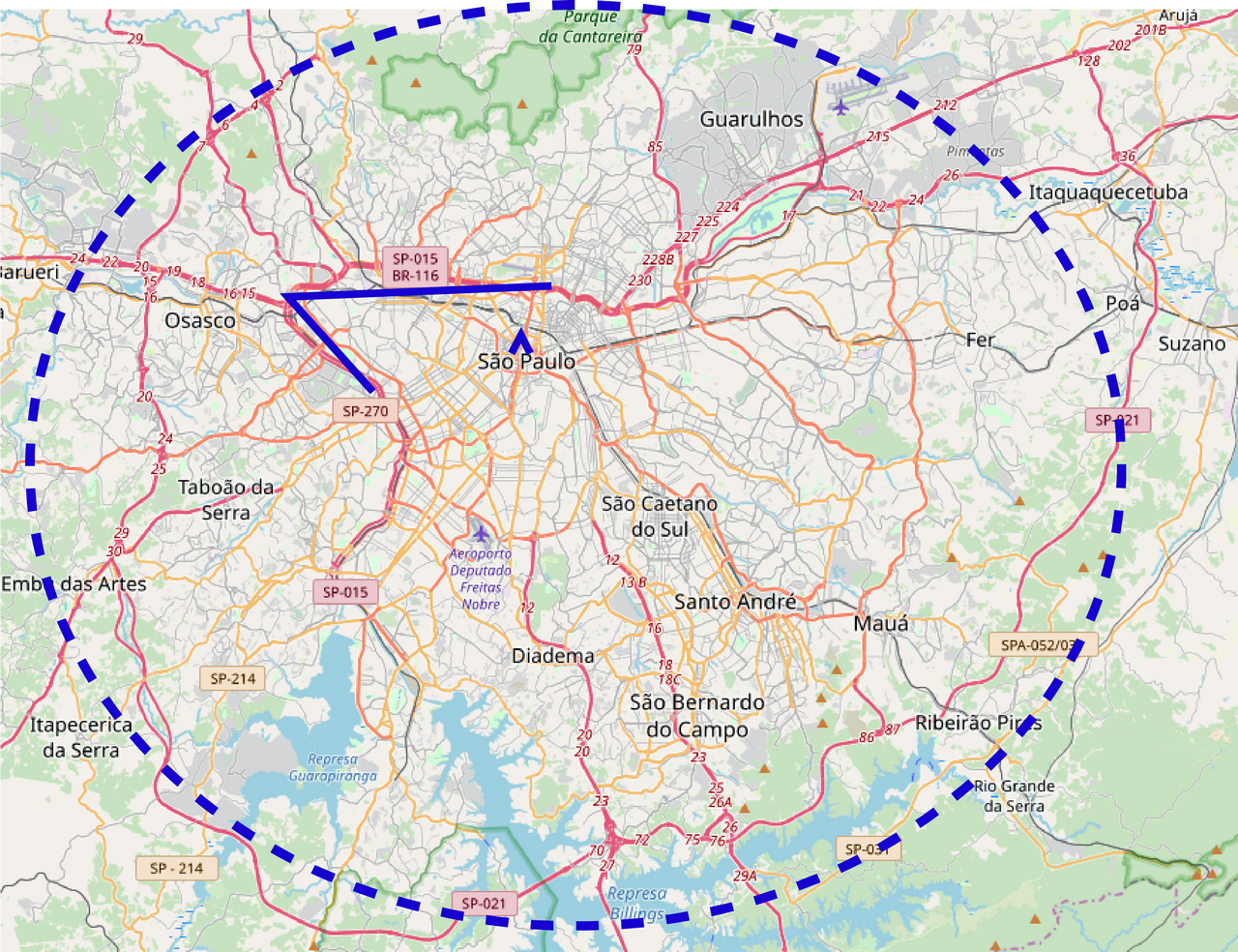 Son but est de contourner la ville à bonne distance et de raccorder entre elles et les autoroutes menant vers le littoral au sud, Rio de Janeiro au nord-est, Curitiba au sud-ouest et vers les villes de l'intérieur de São Paulo à l'ouest.