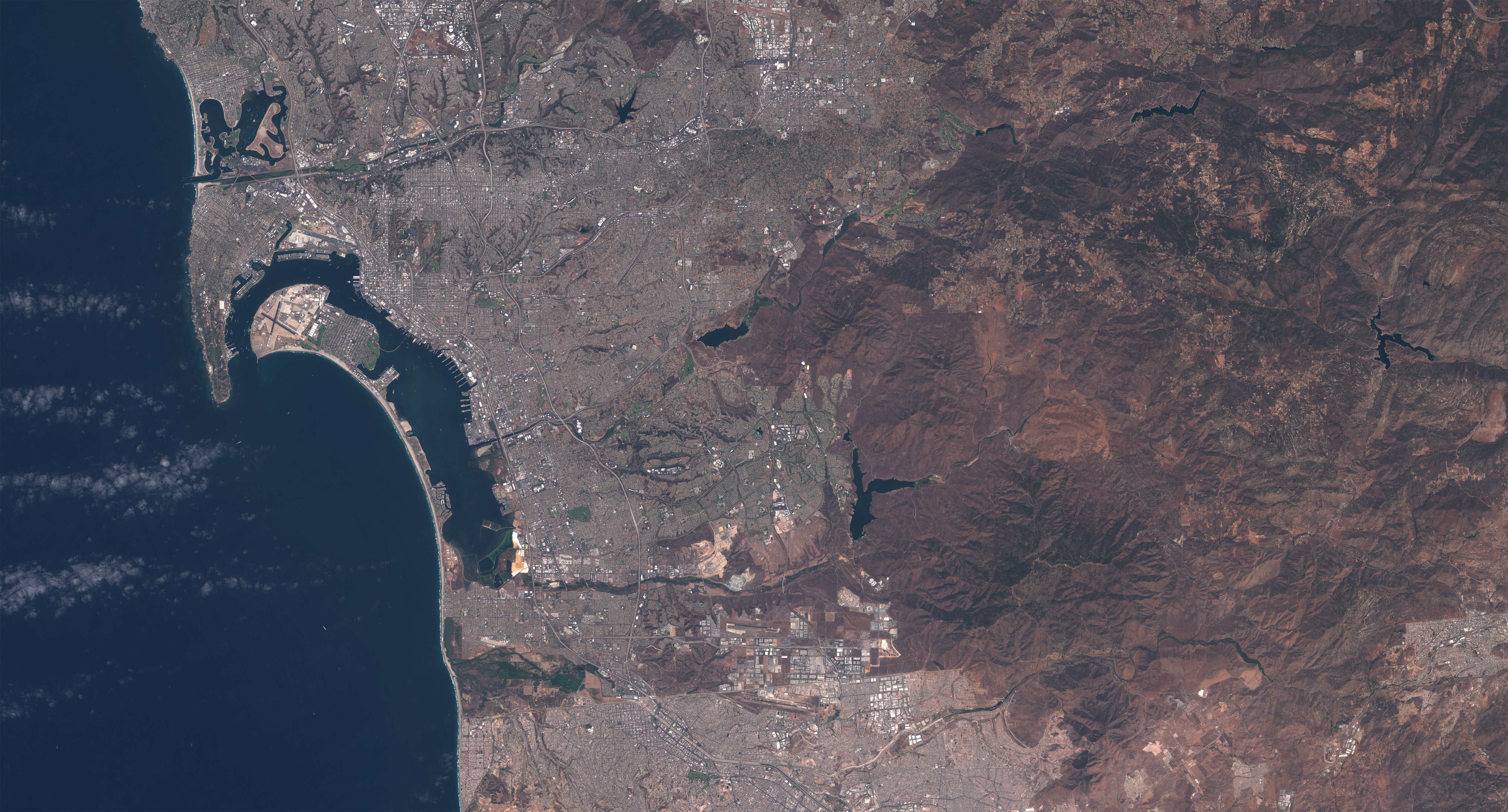 Esta imagen de San Diego, una ciudad litoral del sur del estado de California fue tomada el 4 de agosto de 2018 por un satélite Sentinel-2 y es una imagen en color natural con resolución nativa a 10m.