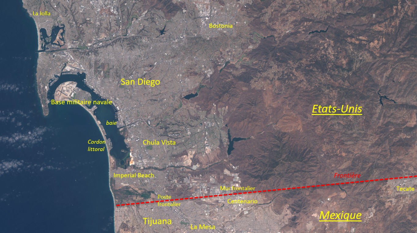 Para entender su importancia geoestratégica, es necesario cambiar de escala y trabajar a la escala de la costa del Pacífico del Estado-Continente que son los Estados Unidos. A lo largo de miles de kilómetros, desde la frontera mexicana al sur hasta la frontera canadiense al norte, hay muy pocos puertos o bahías grandes y bien protegidos: San Diego, San Francisco y Seattle. Esto explica por qué el control de la Bahía de San Diego jugó un papel esencial en el siglo XIX en la determinación regional de la frontera entre los Estados Unidos y México.