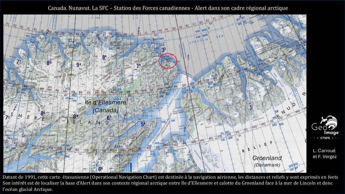 Au 82°29’57’’N dans la région de Qikiqtaaluk au nord du Nunavut, la station militaire d’Alert – Station des Forces canadienne Alert (SFC Alert) - est l’habitat permanent le plus au nord à la fois du monde et de cet immense État-continent qu’est le Canada. Son aérodrome se trouve à seulement 817 km du pôle Nord géographique. L’impact de cette très haute latitude est immédiat : du 8 avril au 5 septembre s’étend la période estivale où il n’y a aucune obscurité du fait du « soleil de minuit » alors que du 10 octobre au 1er mars règne la « nuit polaire », le soleil disparaissant de l’horizon.