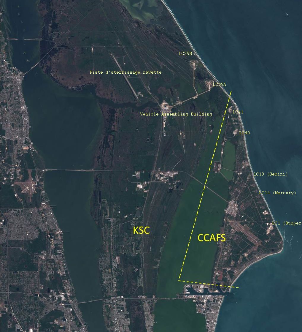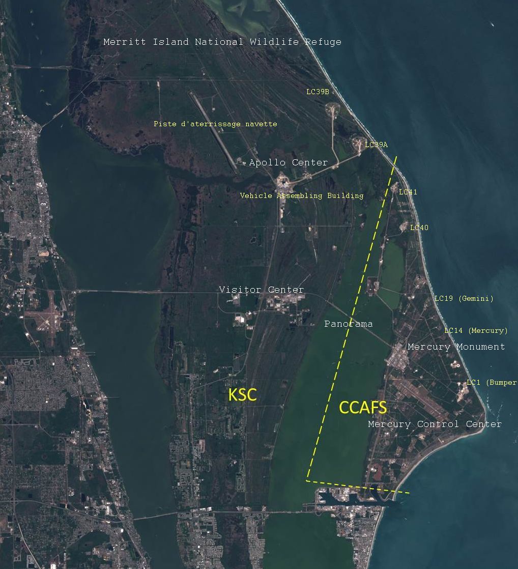 Sur la côte est de la Floride, au bout d’un cap à dominante sableuse, dans l’ancienne région occupée par les Indiens Séminoles se dressent l’un des fleurons et des témoignages les plus vivants de l’aventure spatiale humaine. Si le nom de Cape Canaveral est devenu mythique dans le domaine du spatial, cette simplification ne doit pas faire oublier que la base est en fait double. Le complexe astronautique de Cape Canaveral est en fait constitué par 2 bases aux fonctions et aux modes de gestion (Armée de l’Air et NASA) distinctes. Elles sont séparées l’une de l’autre par la Banana River.