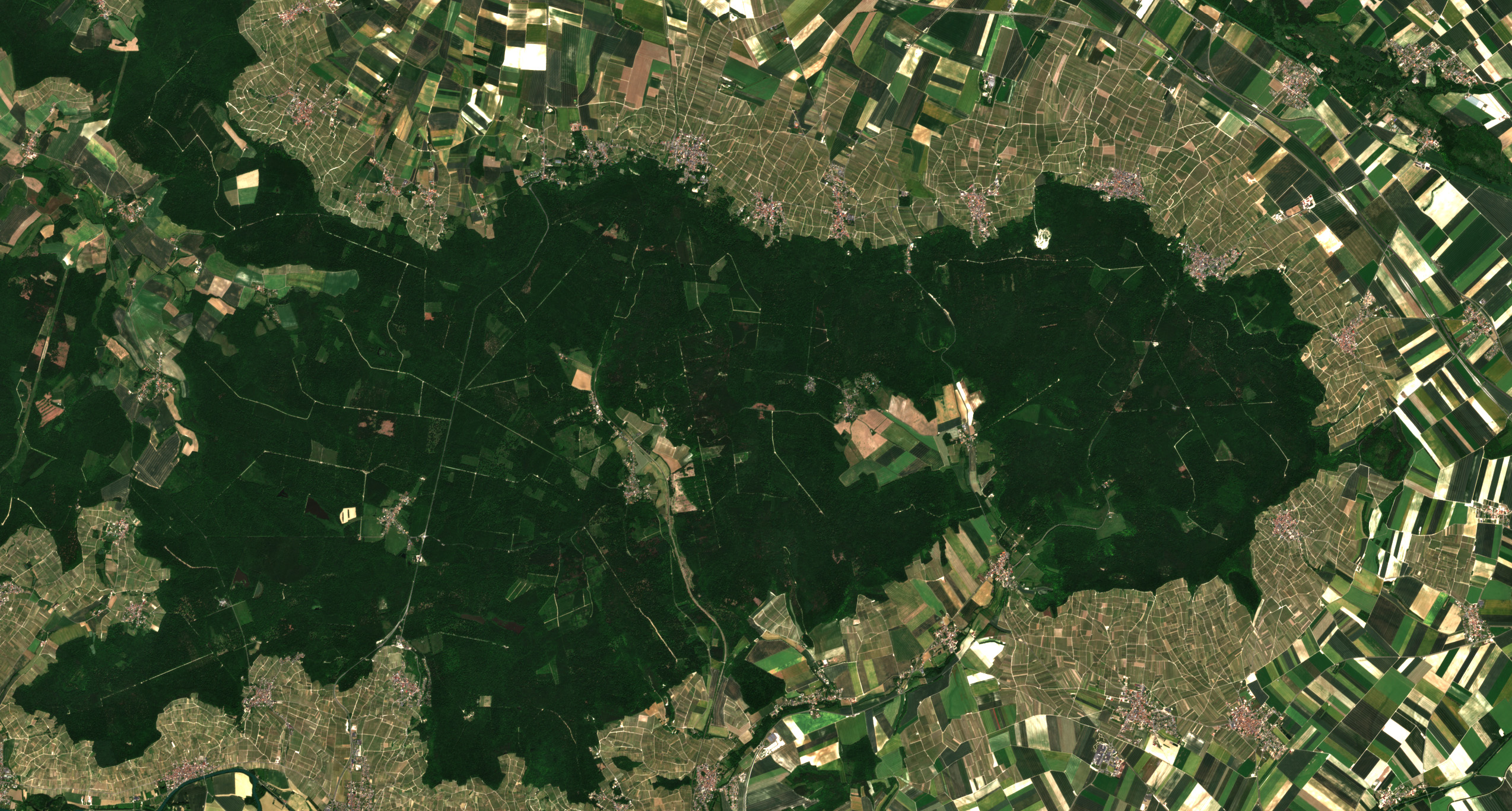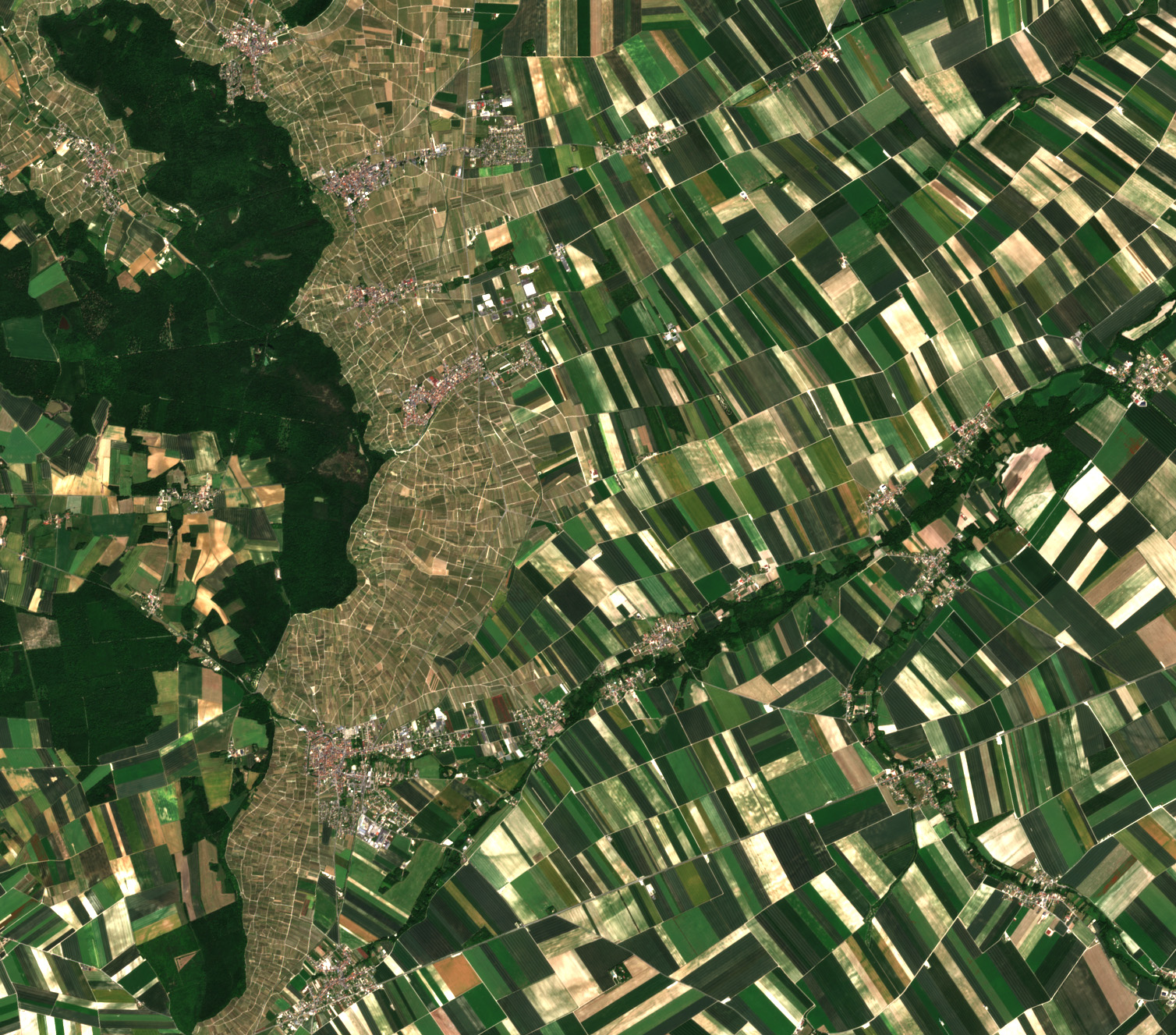 En amont de la cuesta, la rivière et le vignoble se séparent : l’axe est-ouest de la rivière se découple d’un coteau désormais orienté sud-ouest / nord-est (visible uniquement dans le coin supérieur gauche). La plaine céréalière, comme la vallée de la Marne, reste néanmoins marquée par la proximité du vignoble : les effets de la vigne s’y font sentir. De part et d’autre de la vallée, les villages se succèdent, proches les uns des autres (deux à trois kilomètres seulement) et relativement peuplés. Cette densité rurale, légèrement plus élevée, contraste avec la faible occupation humaine de la plaine. Ces villages, situés sur un axe de circulation traditionnel, profitent de la périurbanisation et du dynamisme viticole et agricole local.