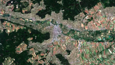 L’appellation « Montagne de Reims » révèle la position relativement périphérique d’Épernay. C’est la cité des sacres qui fait office de centre régional. La vallée de la Marne ne capte pas les grands flux européens entre Paris et l’Allemagne : dans le coin supérieur droit de l’image, on distingue la vallée de la Vesle, qui concentre les infrastructures majeures. Au pied des vignes — et à l’écart d’Épernay — passent la ligne à grande vitesse et l’autoroute. La portion visible correspond à l’A4 (Paris-Strasbourg), mêlée au trafic de l’A26 (Calais-Troyes), tandis que la LGV Est européenne voit filer les TGV, français et allemands, entre Paris et la vallée du Rhin.