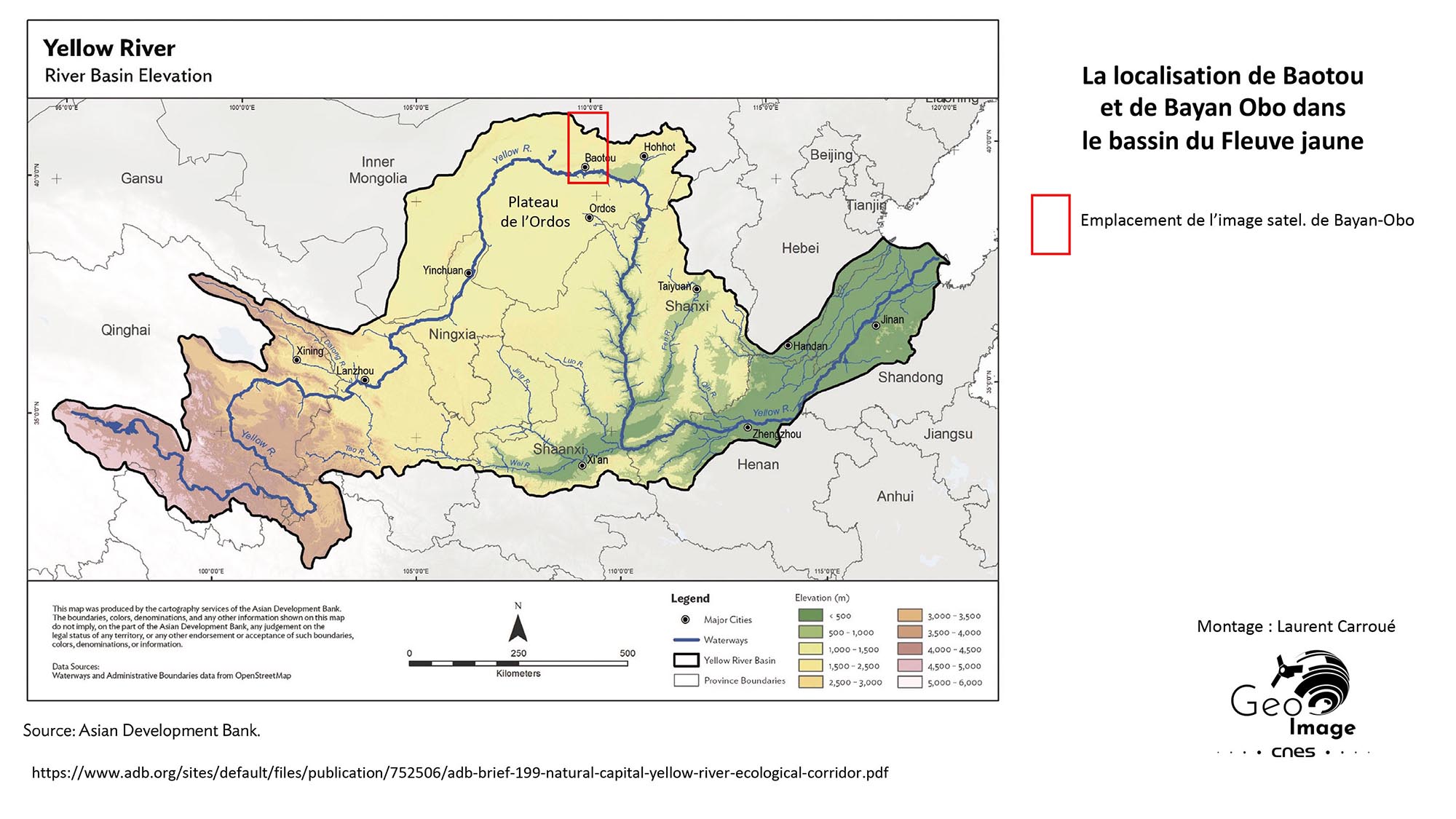 La localisation de Baotou et de Bayan Obo dans le bassin du Fleuve jaune :