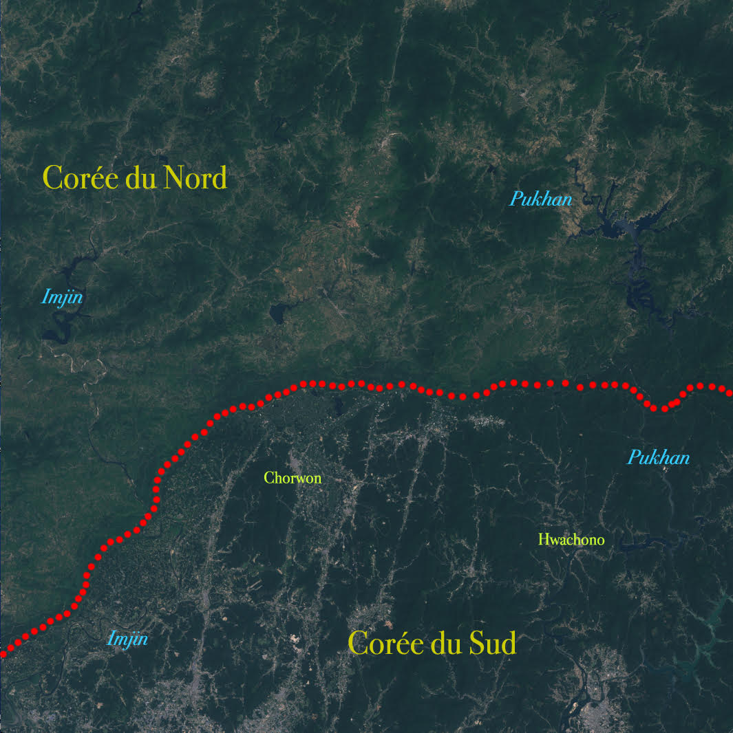 Au total, rien ne prédispose cette région centrale à être traversée par une frontière alors qu’au nord de la péninsule, par exemple, les frontières de la Corée du Nord avec la Chine (1 416 km) et la Russie (19 km) sont fixées respectivement sur les fleuves Amnok (Yalu en chinois) et Tumen.