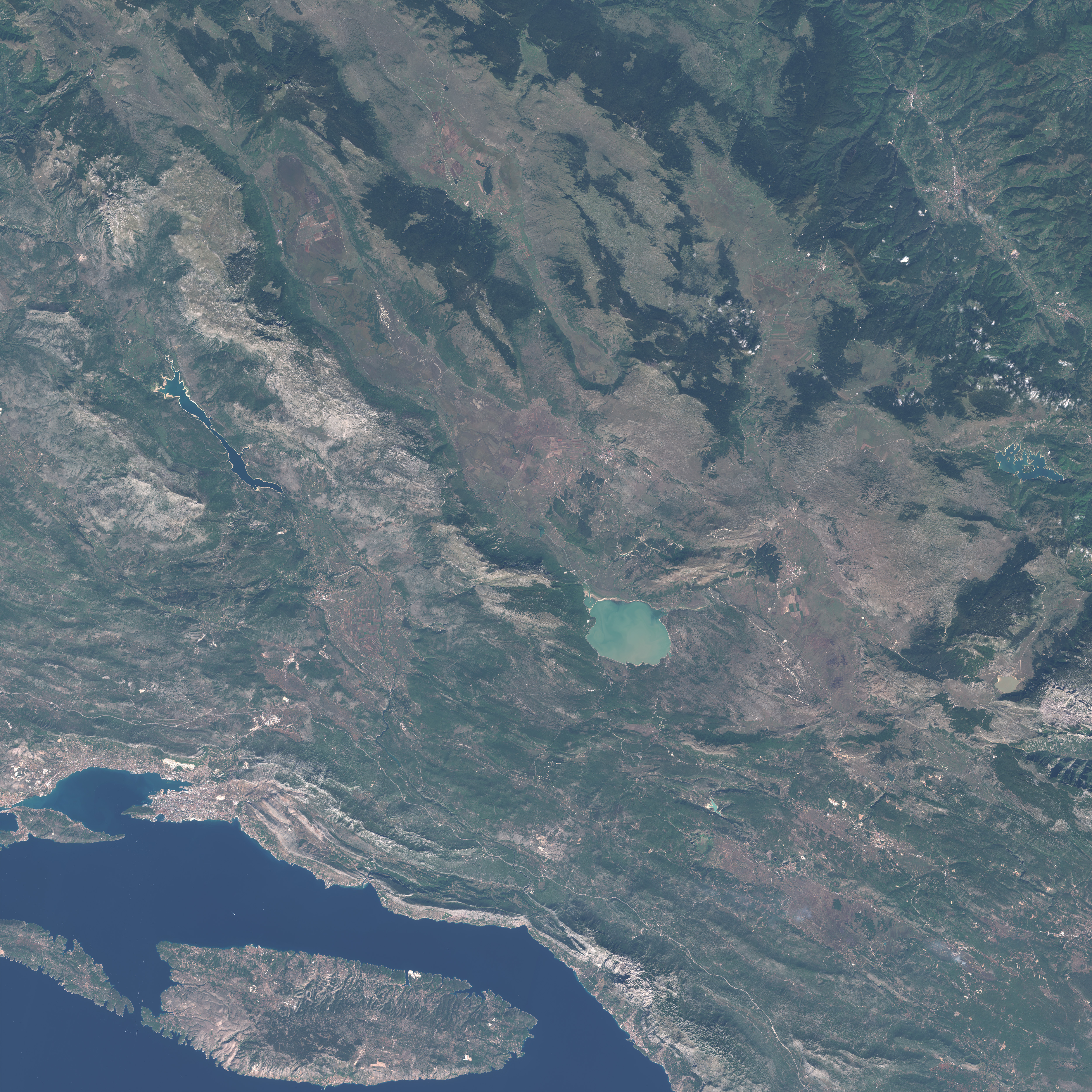 La ville de Split dans son cadre régional. Cette image satellite a été réalisée le 30 septembre par le satellite Sentinel-2A.