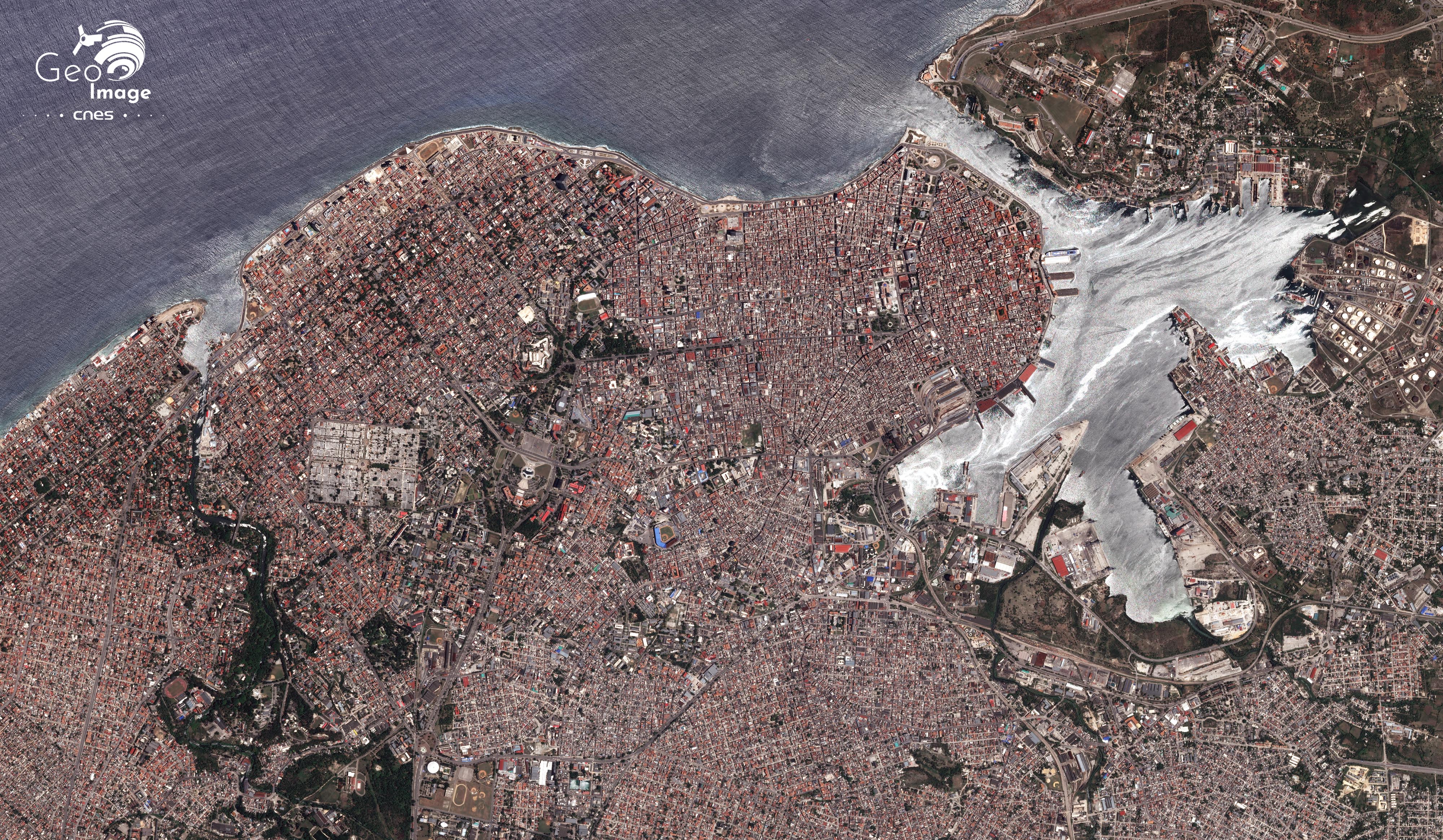 Cette image de la Havane, capitale de Cuba, a été prise par un satellite Pléiades le 1 mai 2018. Il s’agit d’une image en couleur naturelle, de résolution native à 0,70m, ré-échantillonnée à 0,5m.