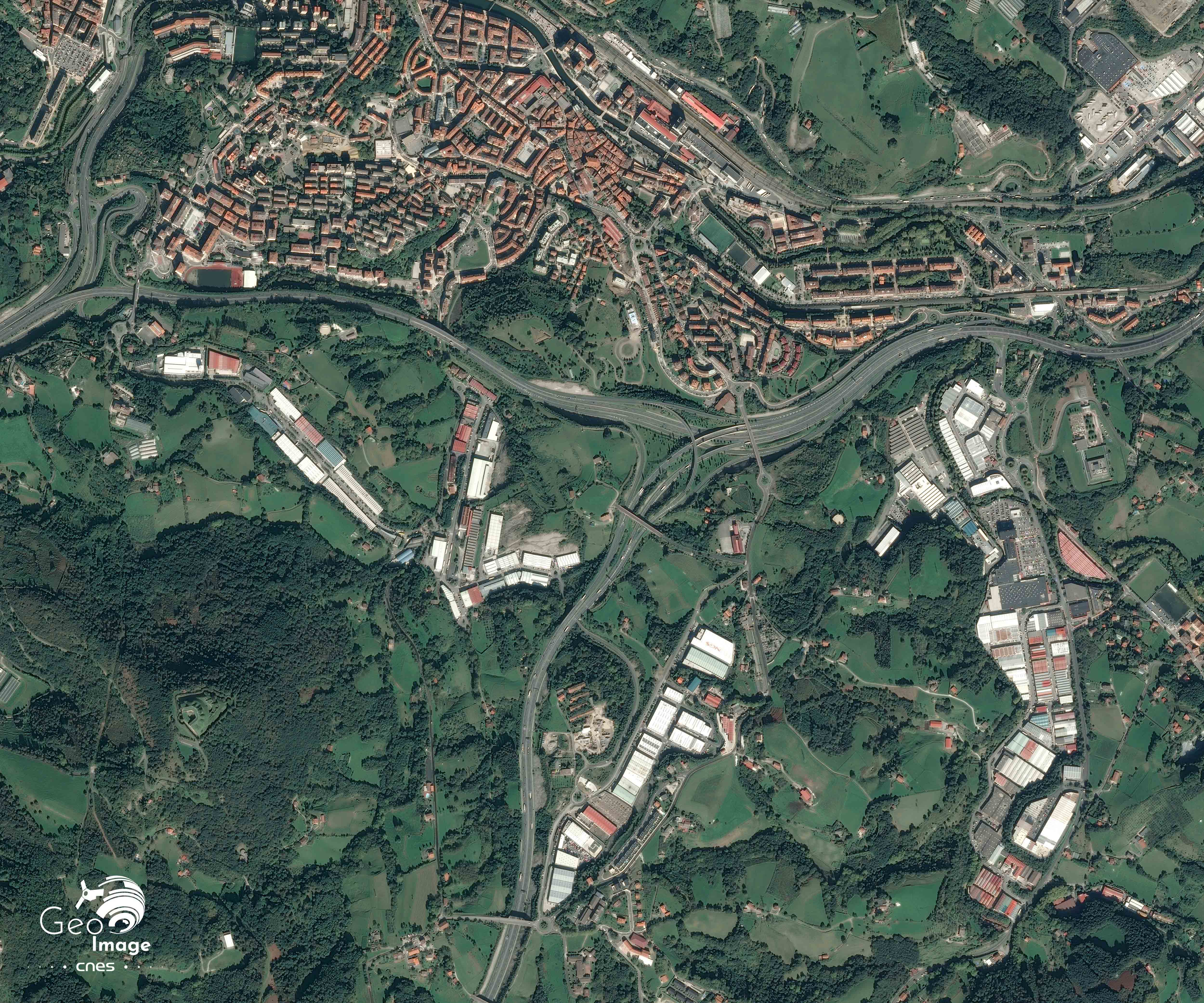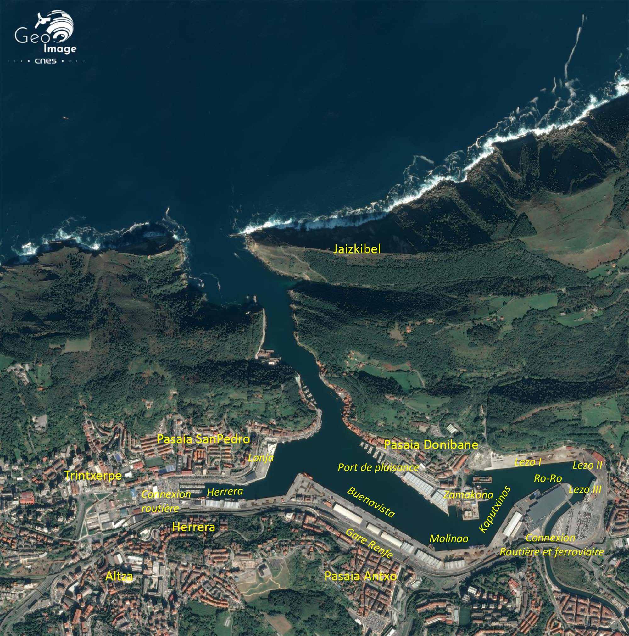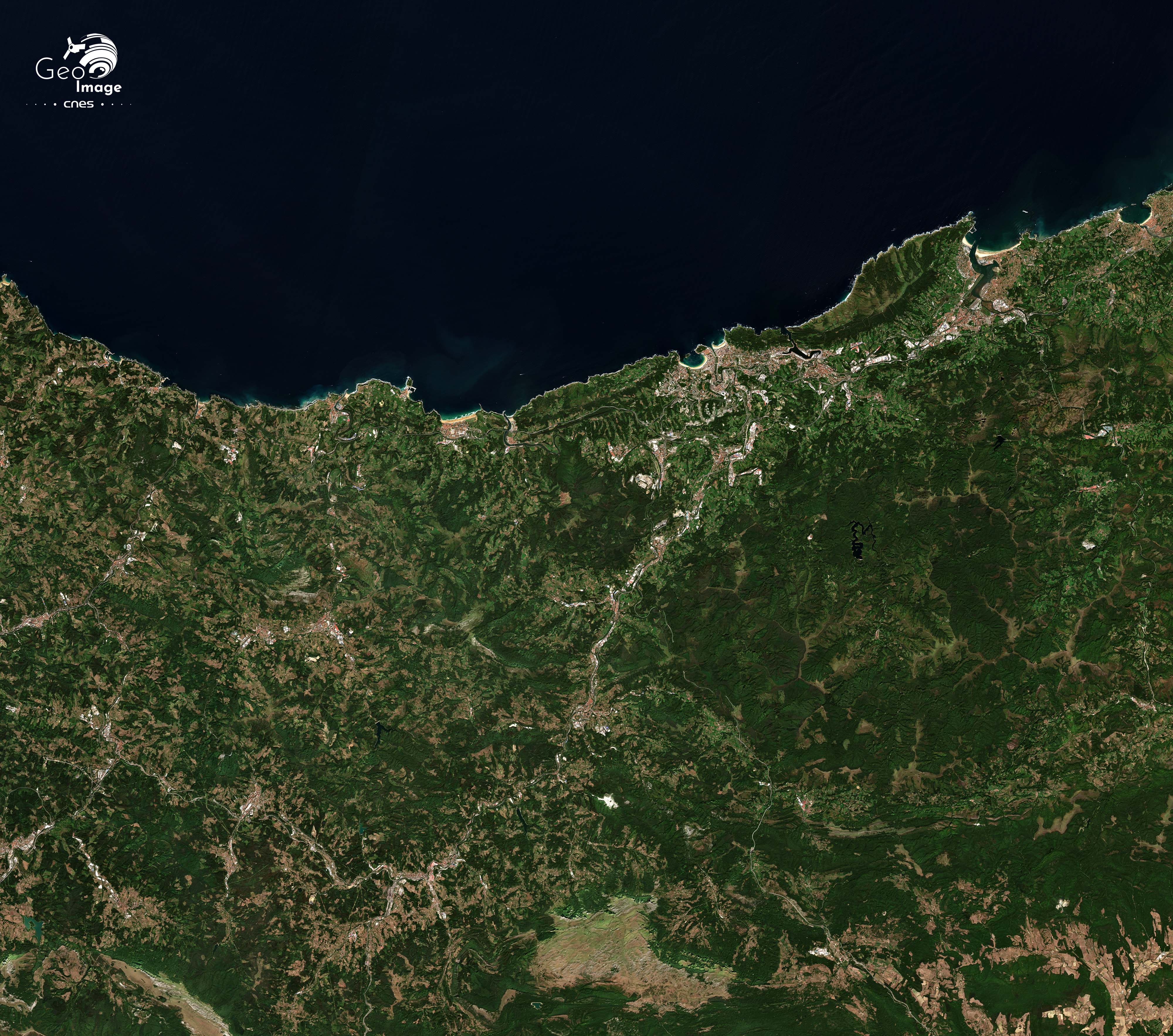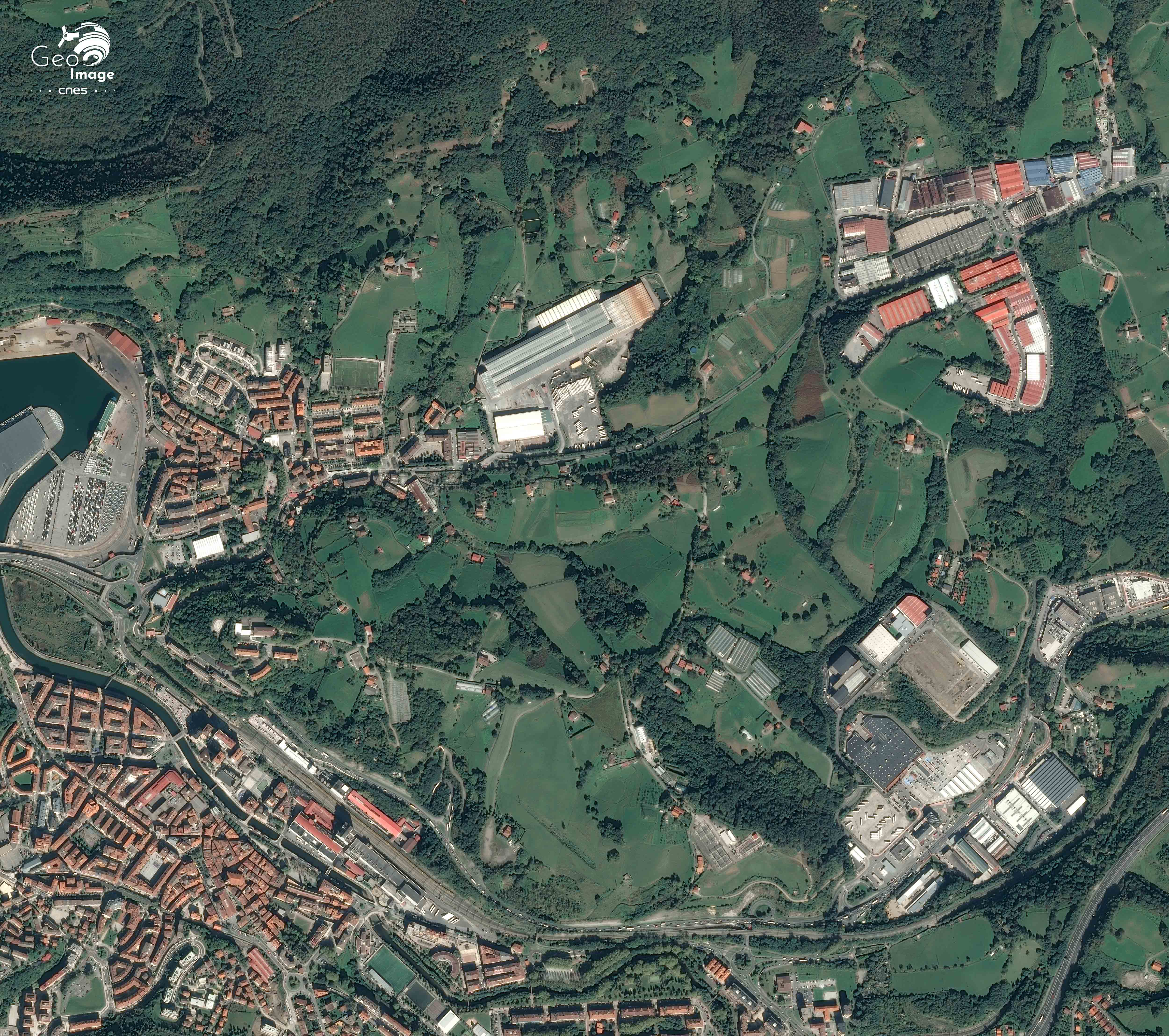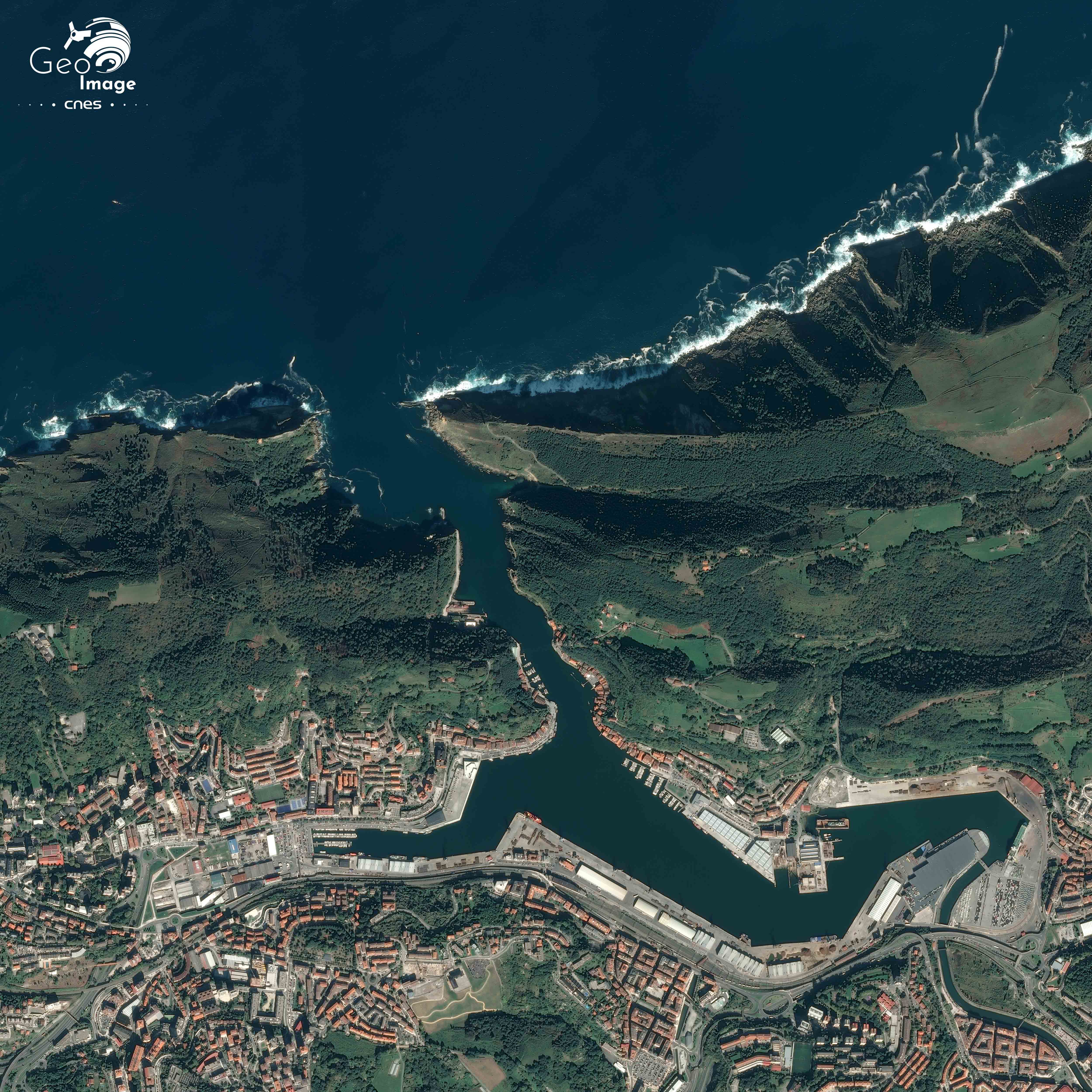 Cette image du port basque de Pasaia, près de Saint Sébastien a été prise par un satellite Pléiades le 11 octobre 2019. Il s’agit d’une image en couleur naturelle, de résolution native à 0,70m, ré-échantillonnée à 0,5m.