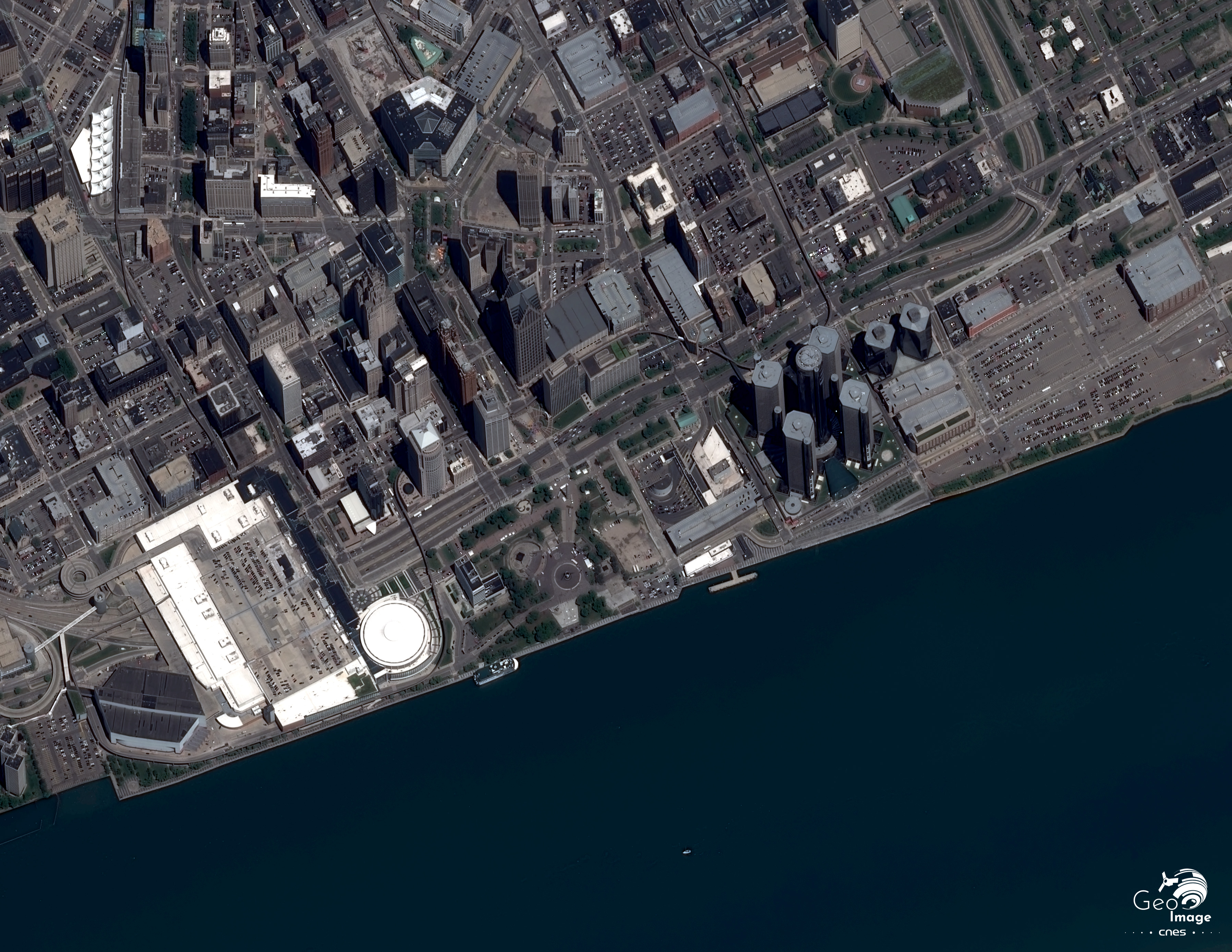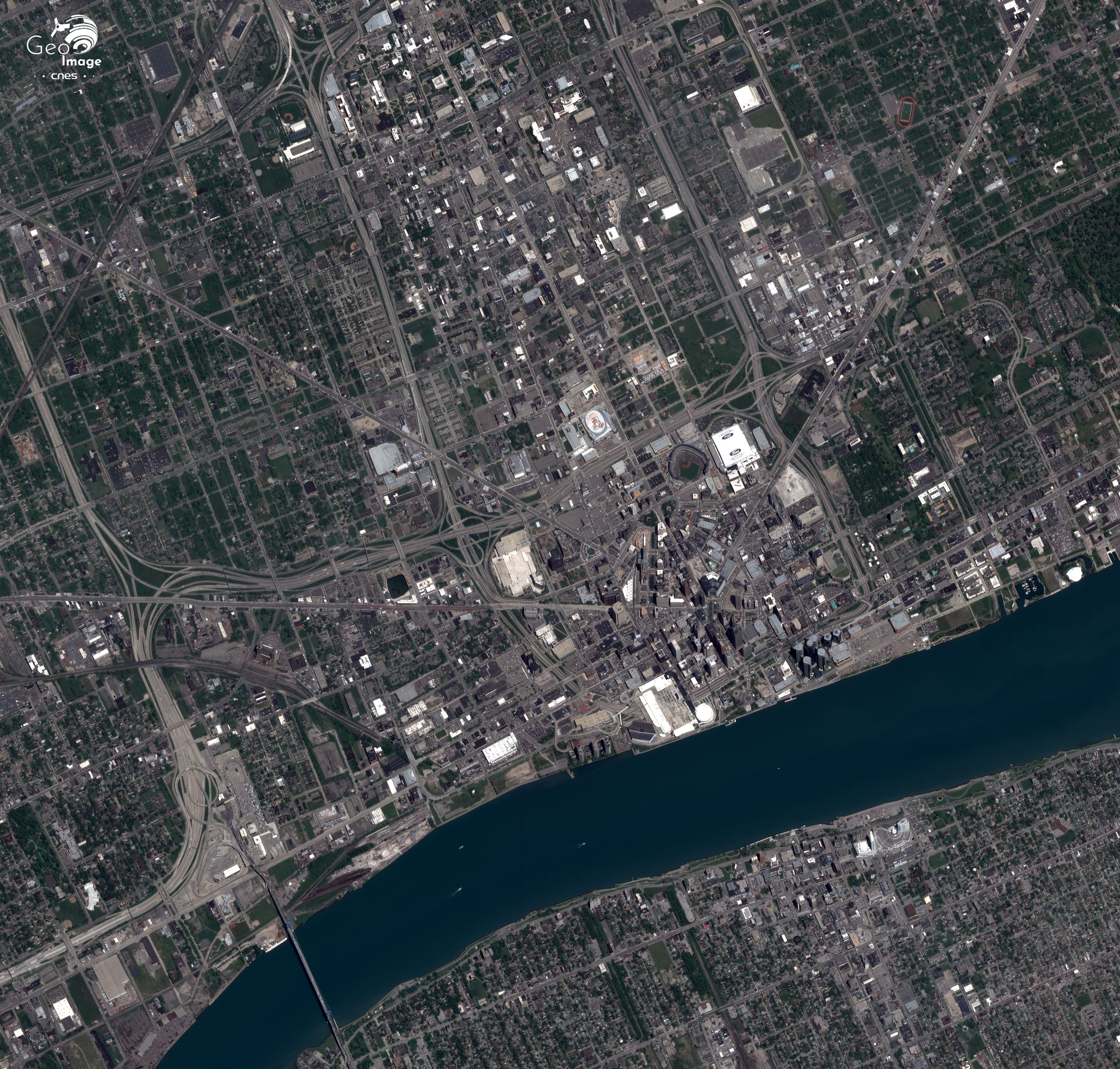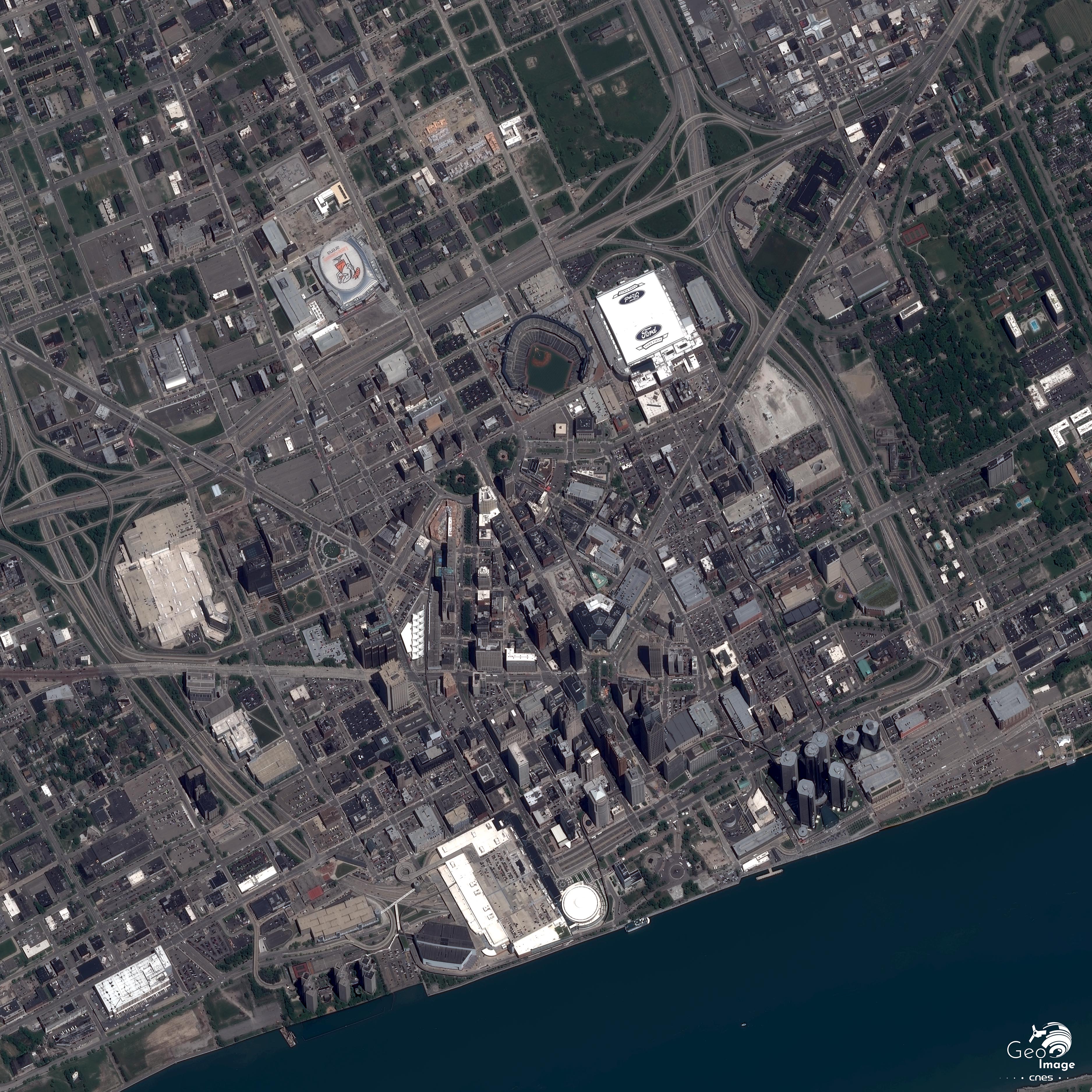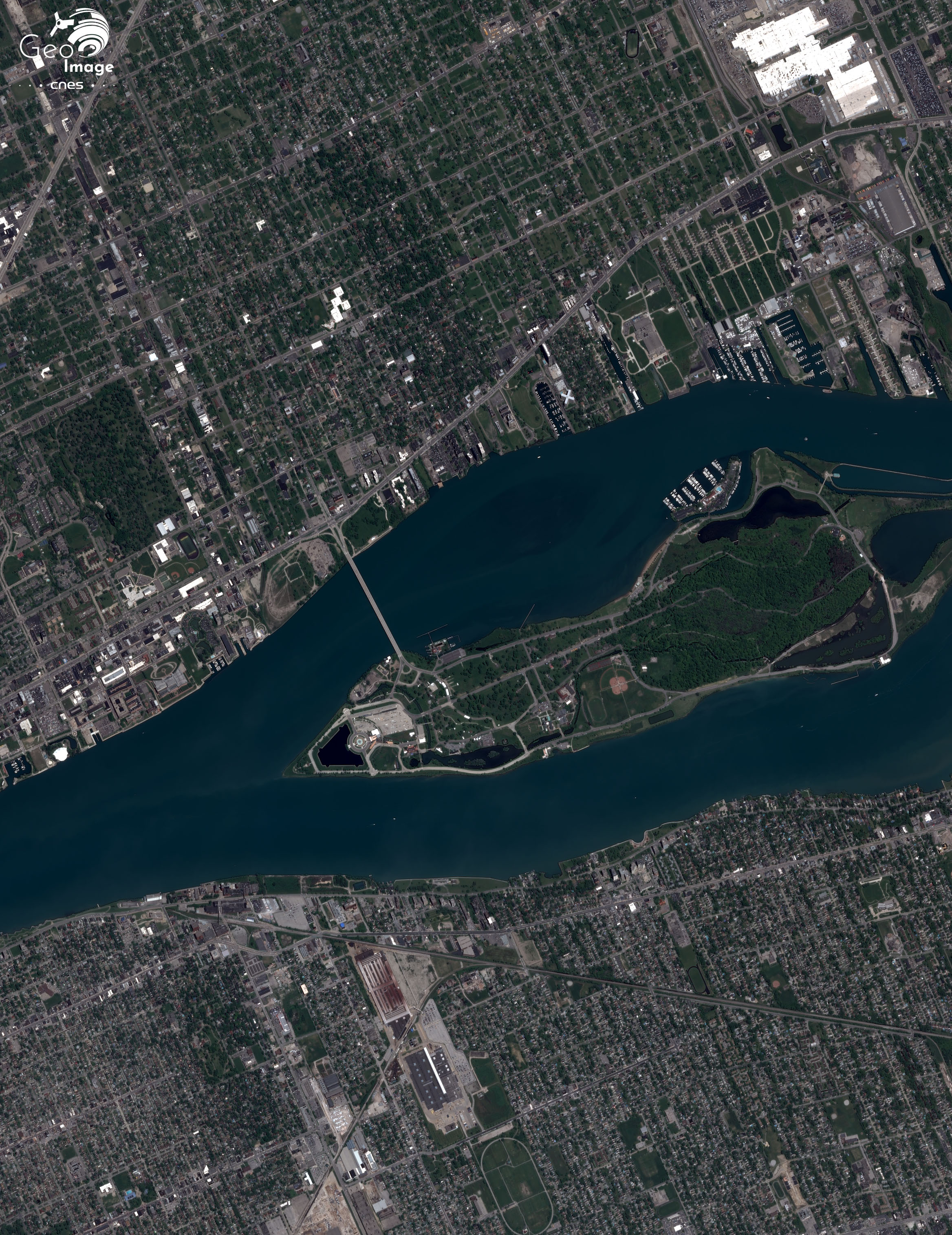 L'image de la ville de Détroit, dans le nord-est des Etats-Unis, a été prise par un satellite Pleiades le 7 juin 2019. Il s’agit d’une image en couleurs naturelles, de résolution native à 0,70m, ré-échantillonnée à 0,5m.