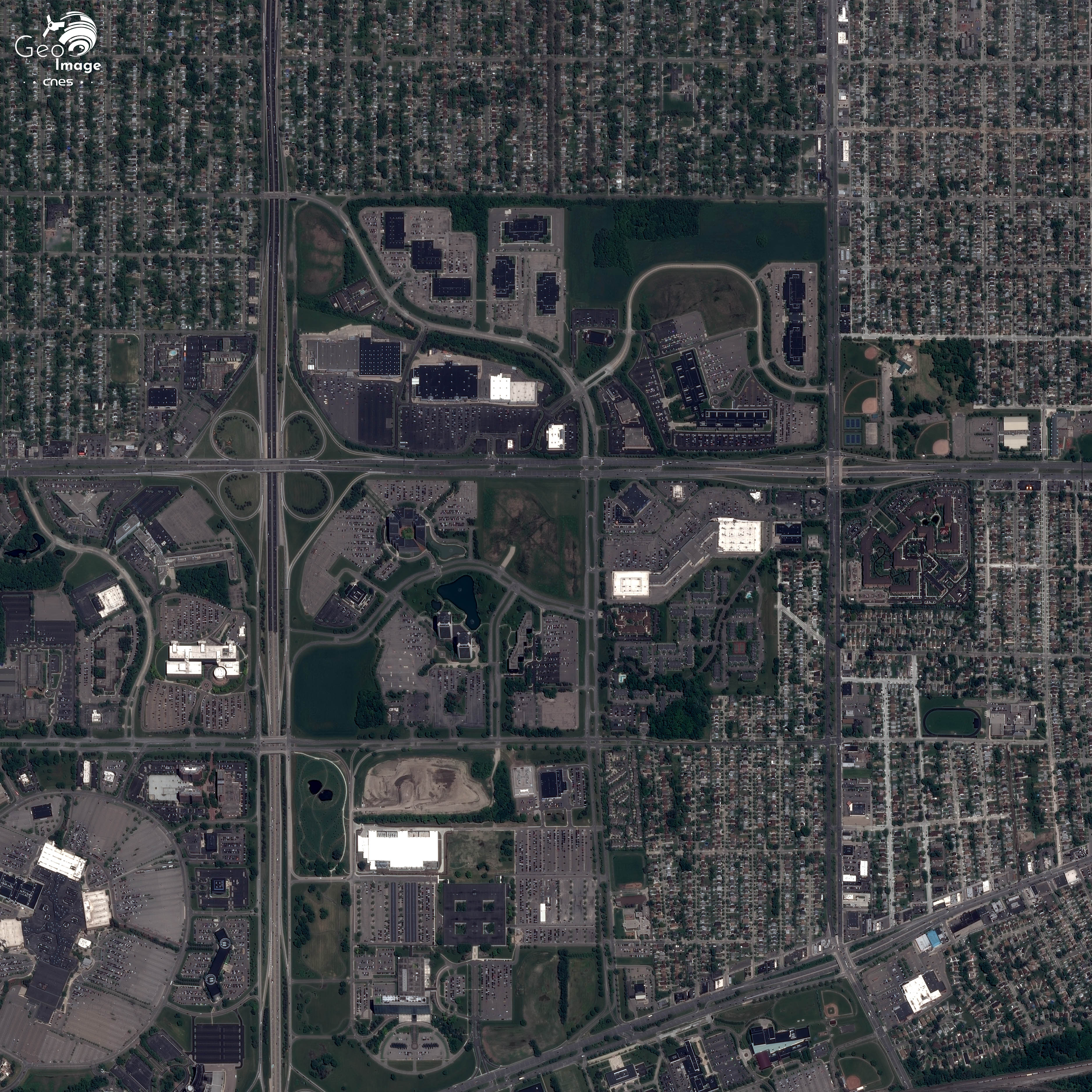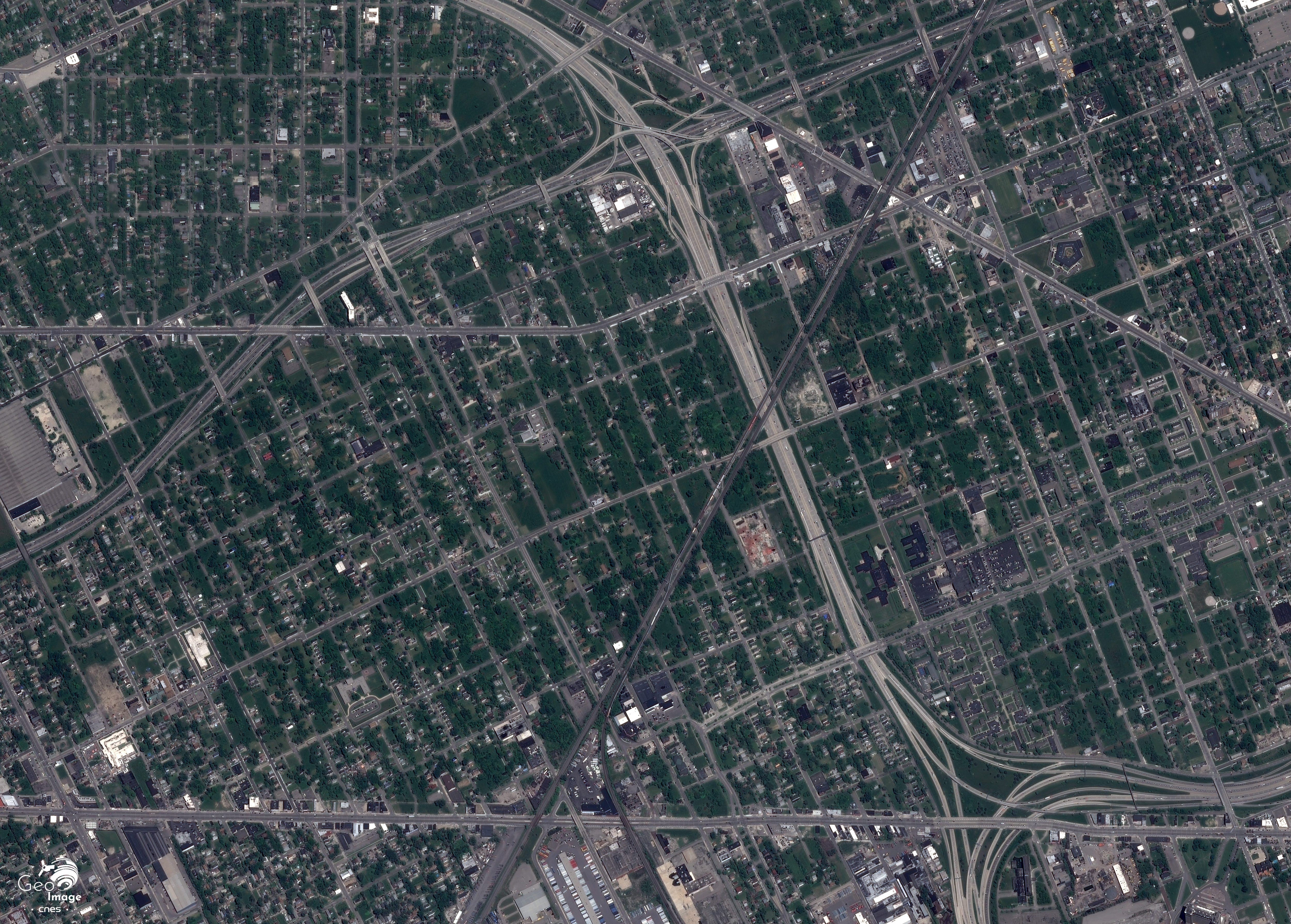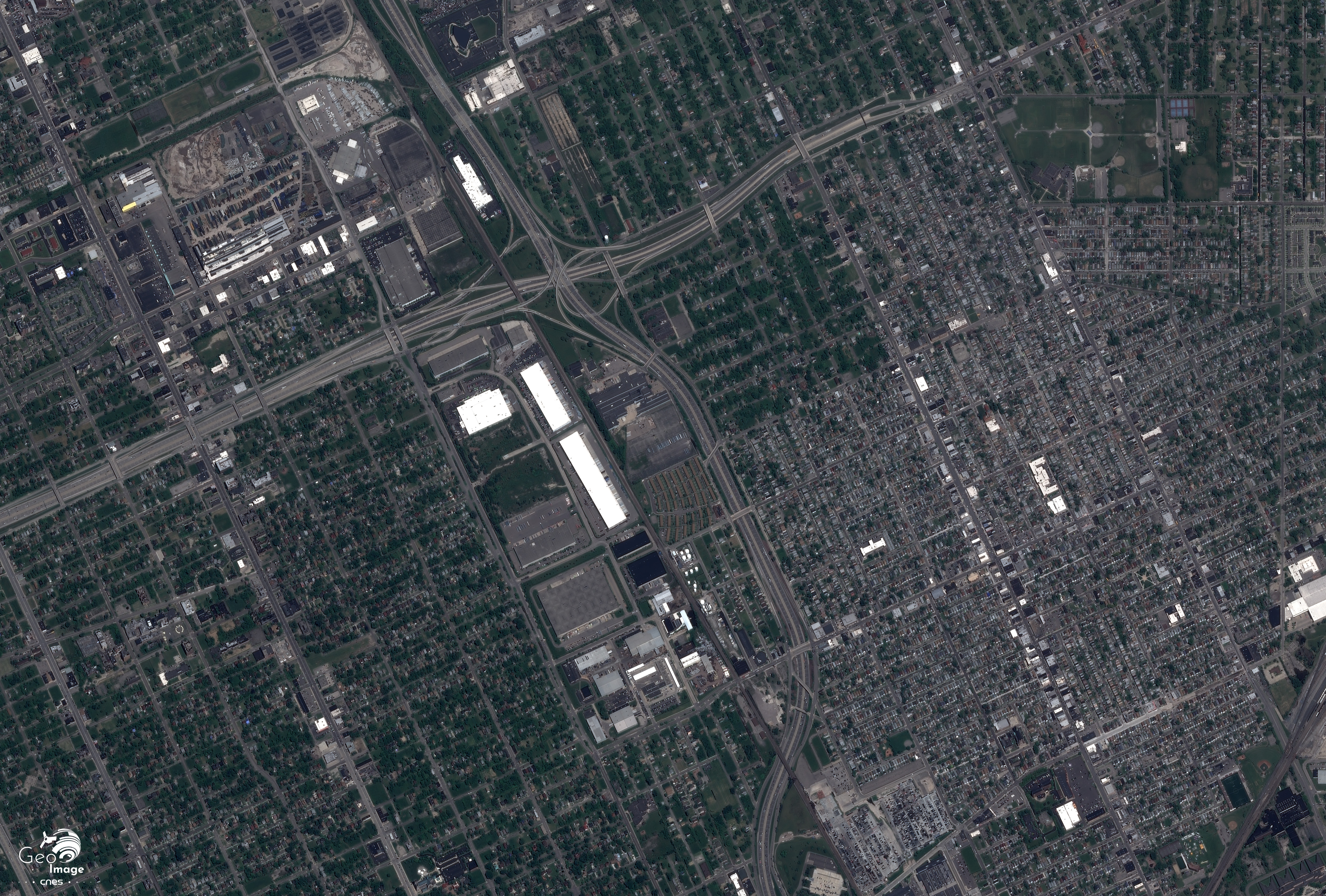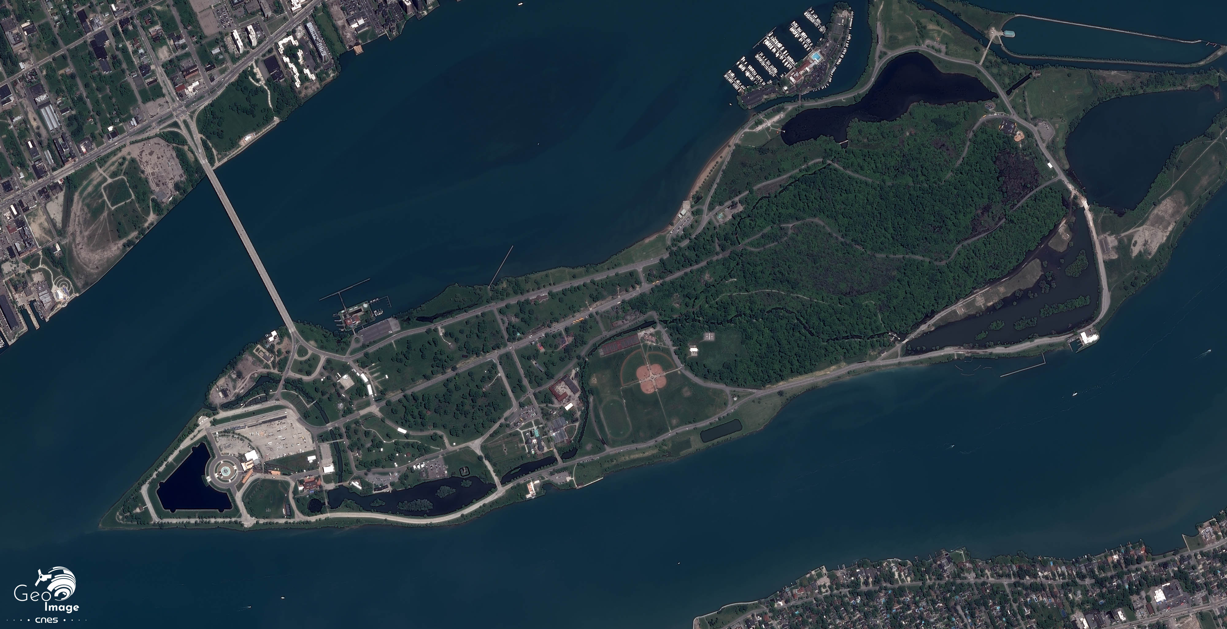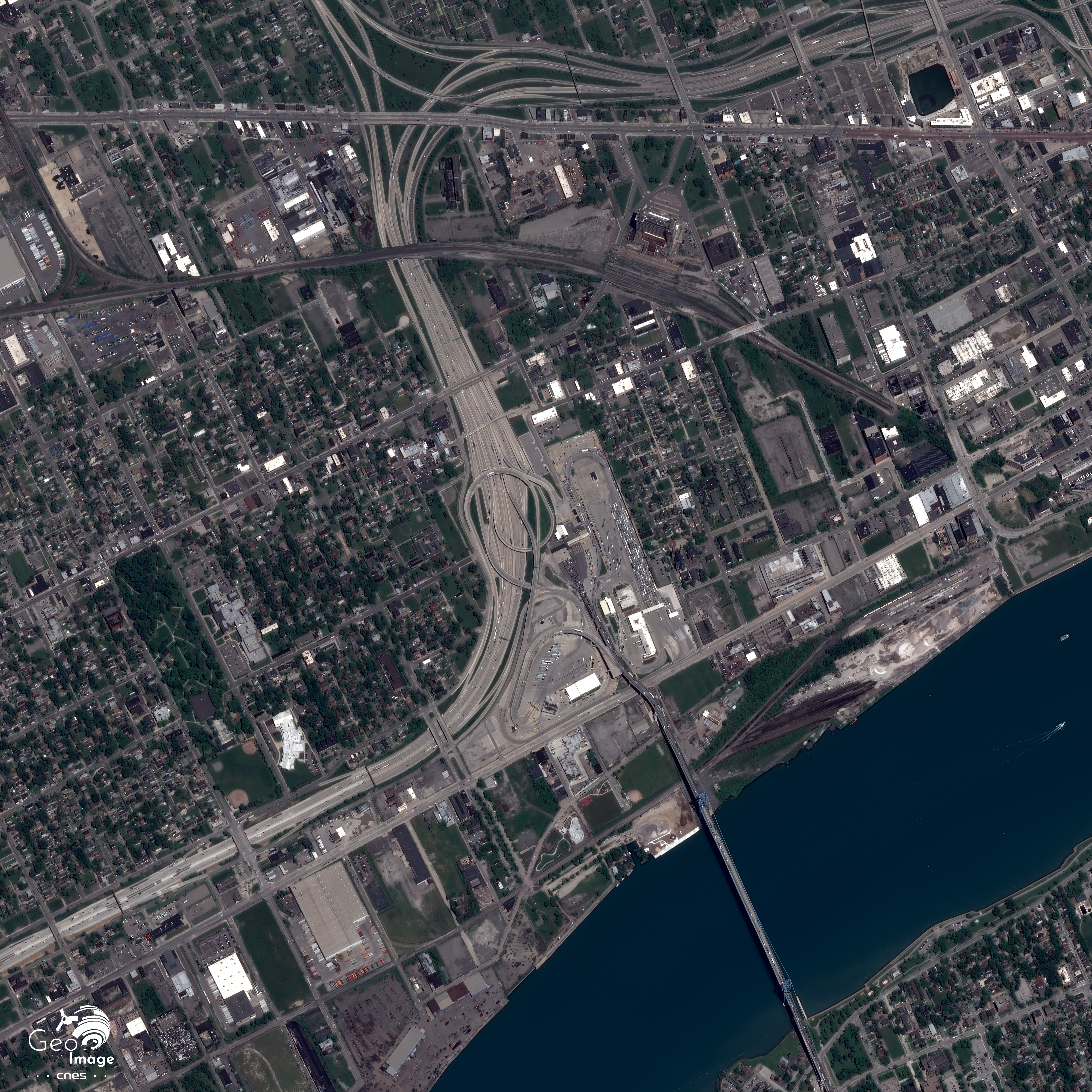 L'image de la ville de Détroit, dans le nord-est des Etats-Unis, a été prise par un satellite Pleiades le 7 juin 2019. Il s’agit d’une image en couleurs naturelles, de résolution native à 0,70m, ré-échantillonnée à 0,5m.