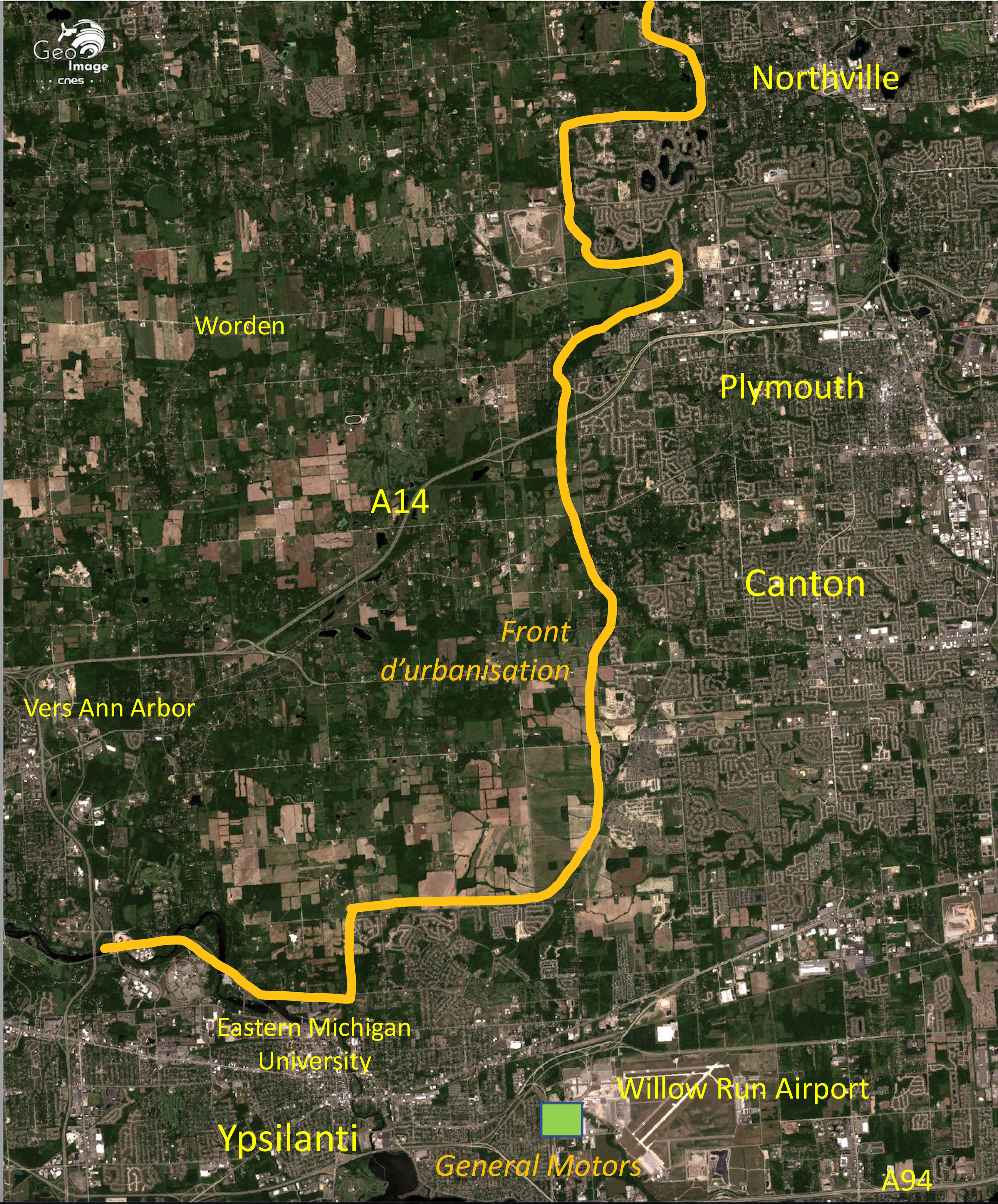 Le front d’urbanisation de l’ouest vers Ypsilanti