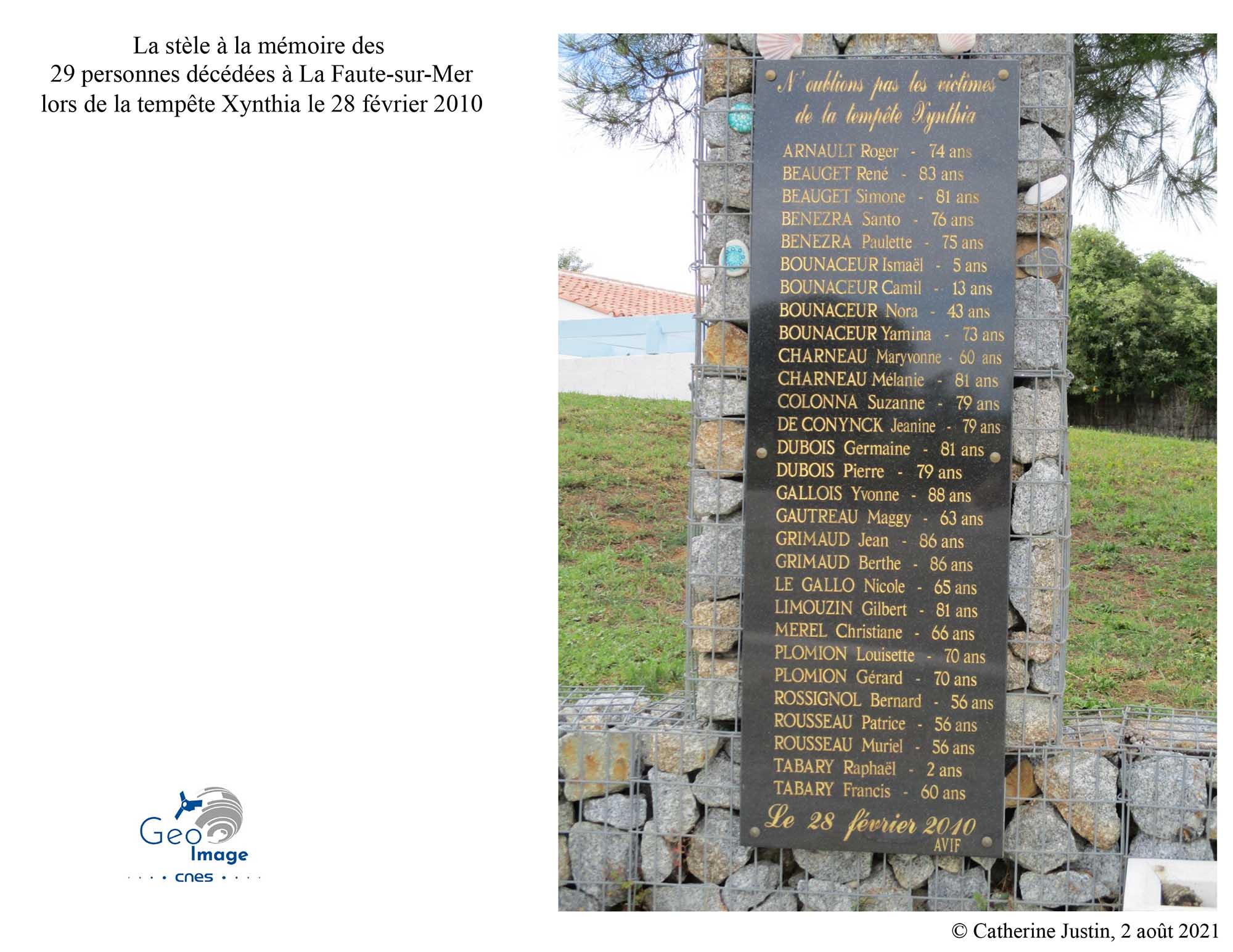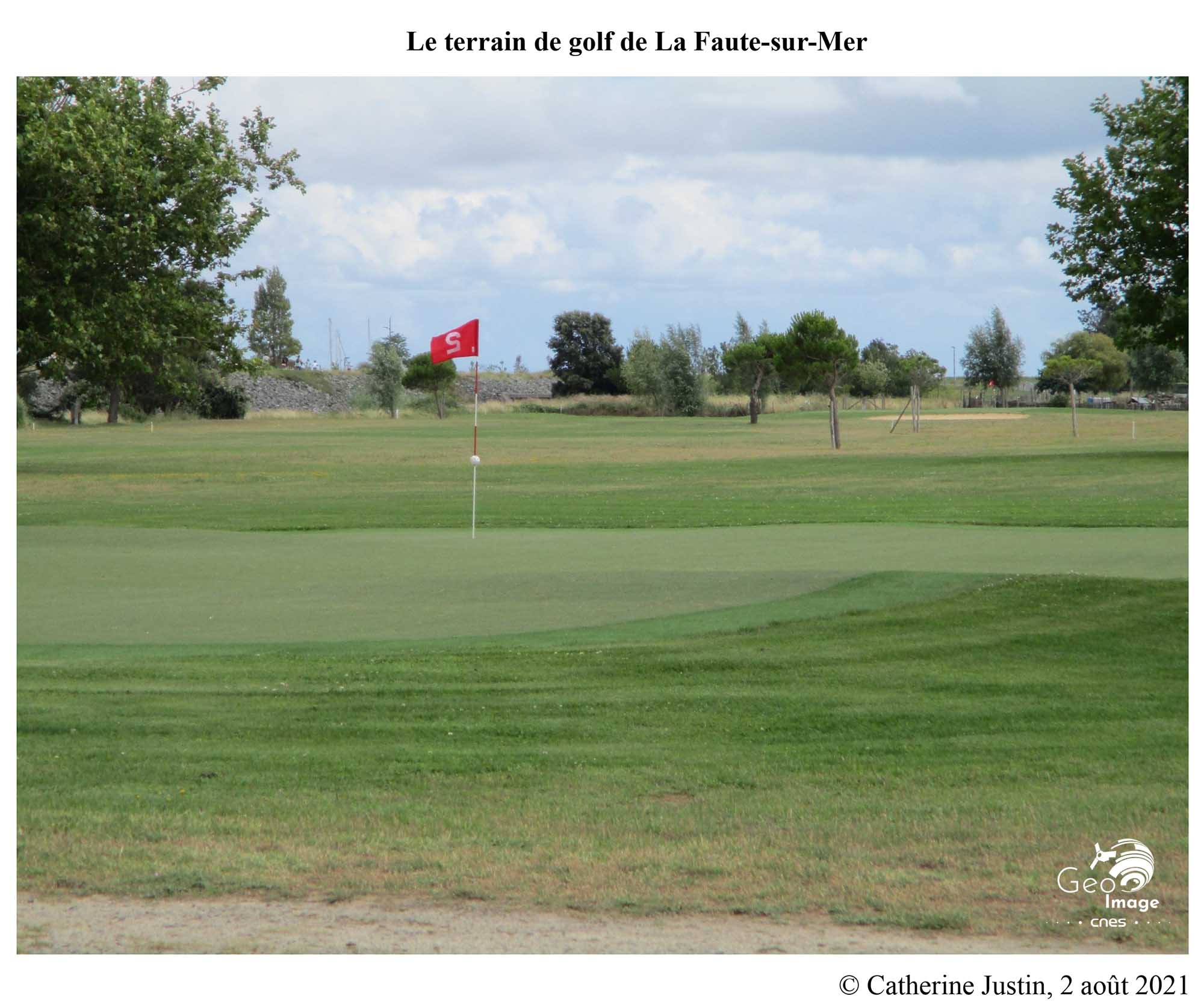 La Faute-sur-Mer, commune la plus endeuillée. À La Faute-sur-Mer, la zone inondée correspondait à la zone aux altitudes les plus basses, située le long de l’estuaire du Lay, et non du côté de l’océan. Le secteur le plus touché a été celui d’un lotissement et du camping municipal, construit illégalement sur le Domaine Public Maritime, situé dans une zone inondable, en arrière de la digue. Le nombre des victimes dans la commune s’est élevé à 29 personnes dont 28 vivaient dans ce lotissement submergé, sans rupture de la digue. Cette zone, située au sud du pont reliant La Faute-sur-Mer à l’Aiguillon-sur-Mer est visible sur l’image. Elle localise aujourd’hui un terrain de golf, à l’abri d’une digue (doc. 12).