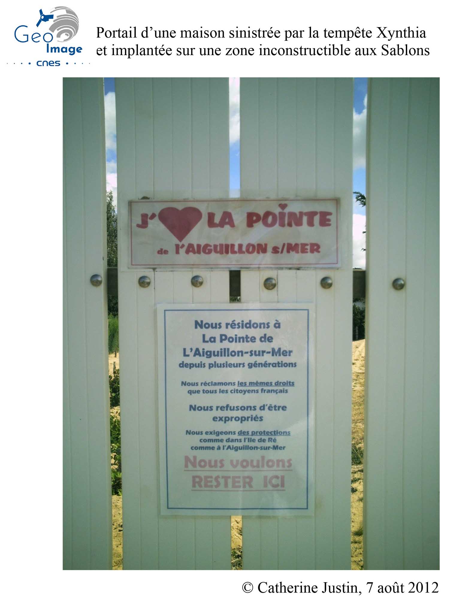 La mise en tourisme. L’image montre bien l’extension du bâti de La Faute-sur-Mer, commune située en front de mer, et de L’Aiguillon-sur-Mer, commune bordant l’estuaire du Lay. Cet étalement de l’habitat a débuté dans les années 1960 et s’est poursuivie jusque dans les années 1990 au détriment de terres agricoles qui servaient notamment de terrains de pâtures. La spéculation foncière exercée par les particuliers et les promoteurs immobiliers ont conduit les municipalités à délivrer des permis de construire afin d’étendre les zones résidentielles.